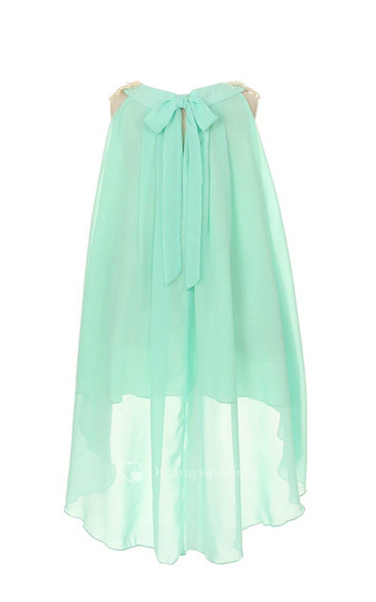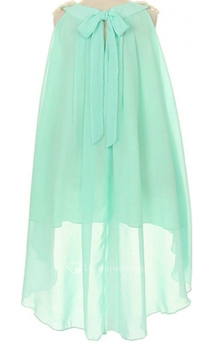 Sleeveless A-line High-low Pleated Dress With Bow