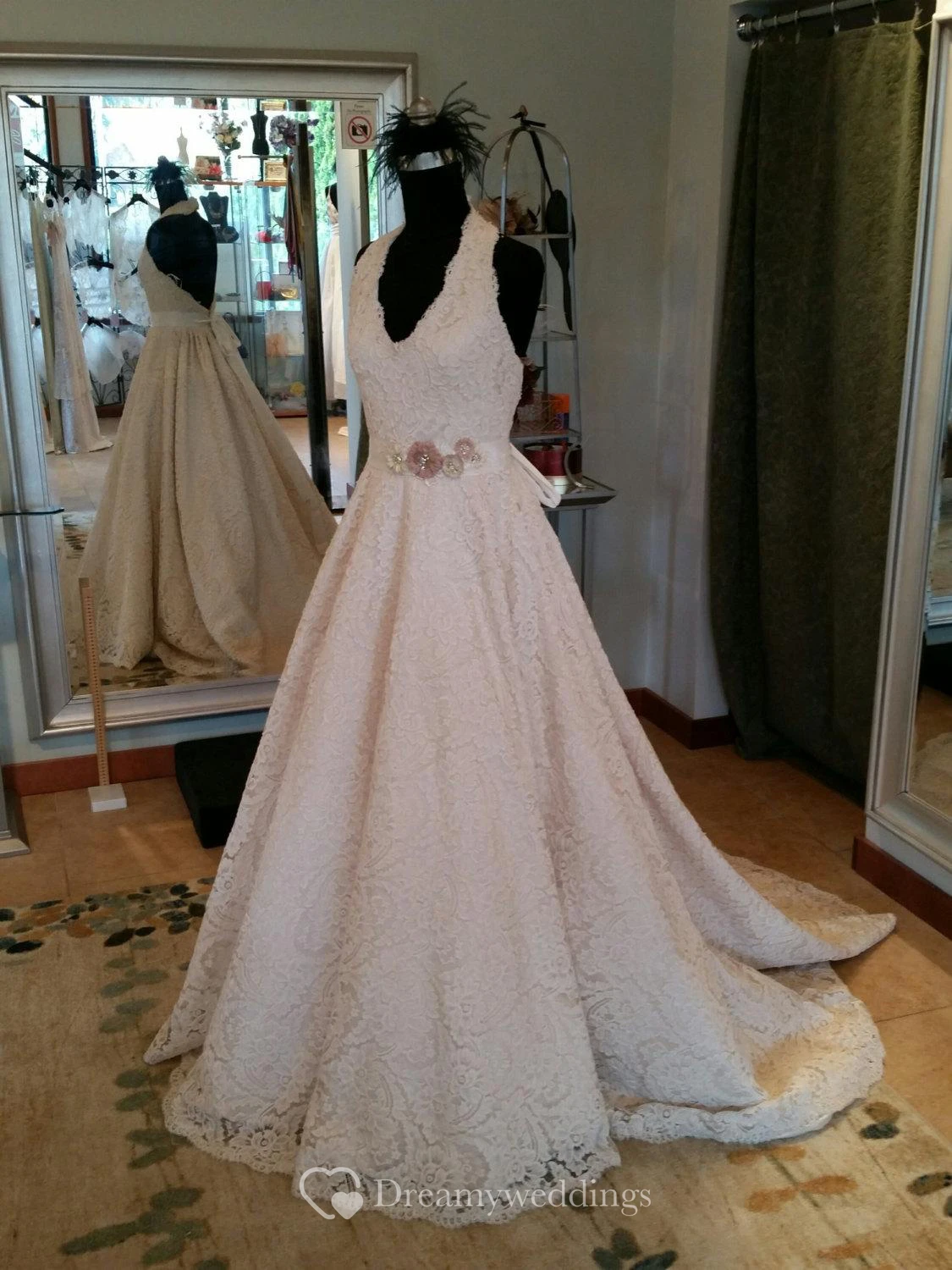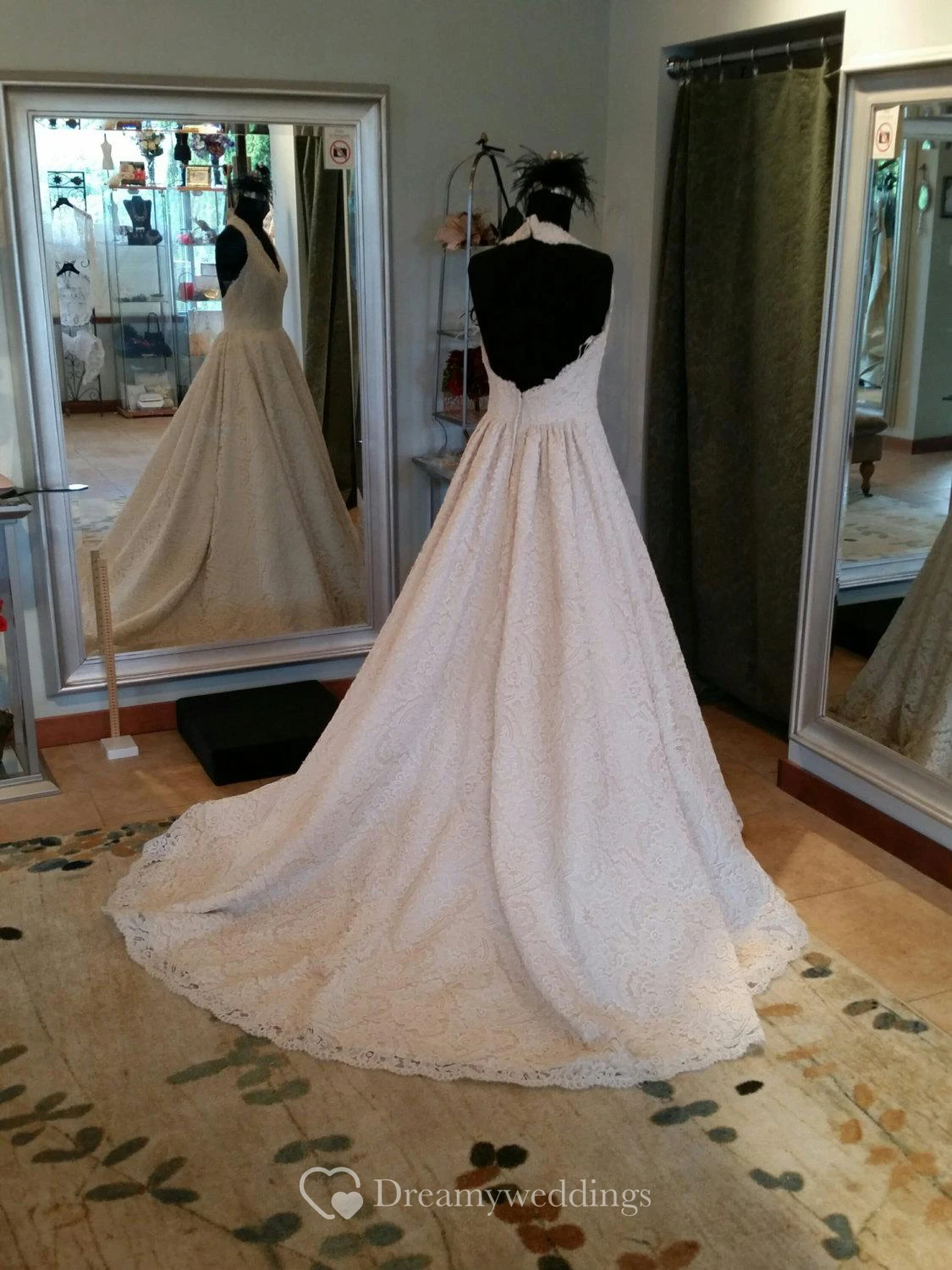 Sleeveless A-Line Lace Dress With Halter and Open Back