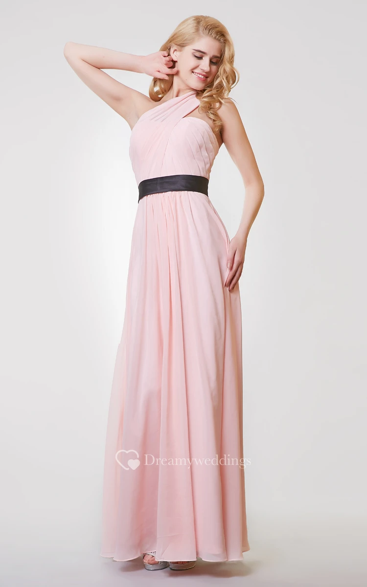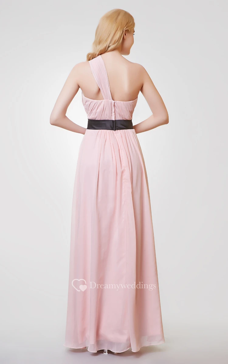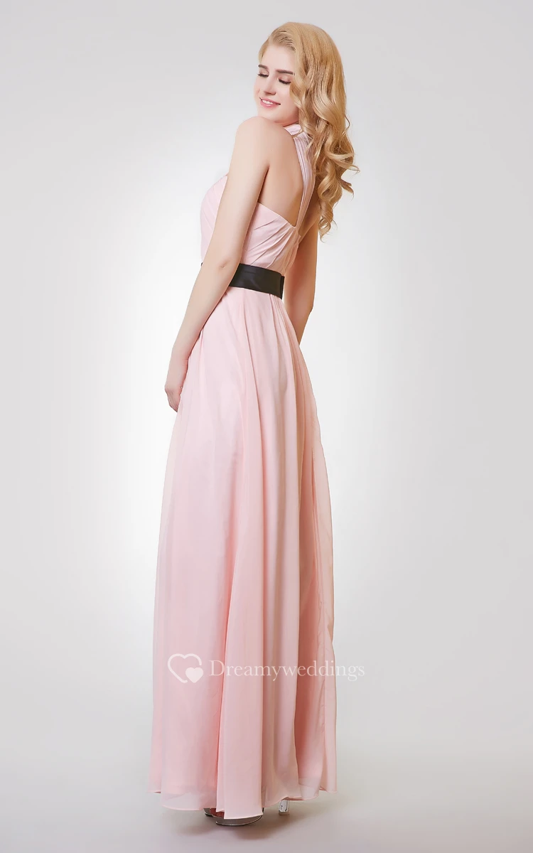Sleeveless A-line Long Chiffon Dress With Ruching