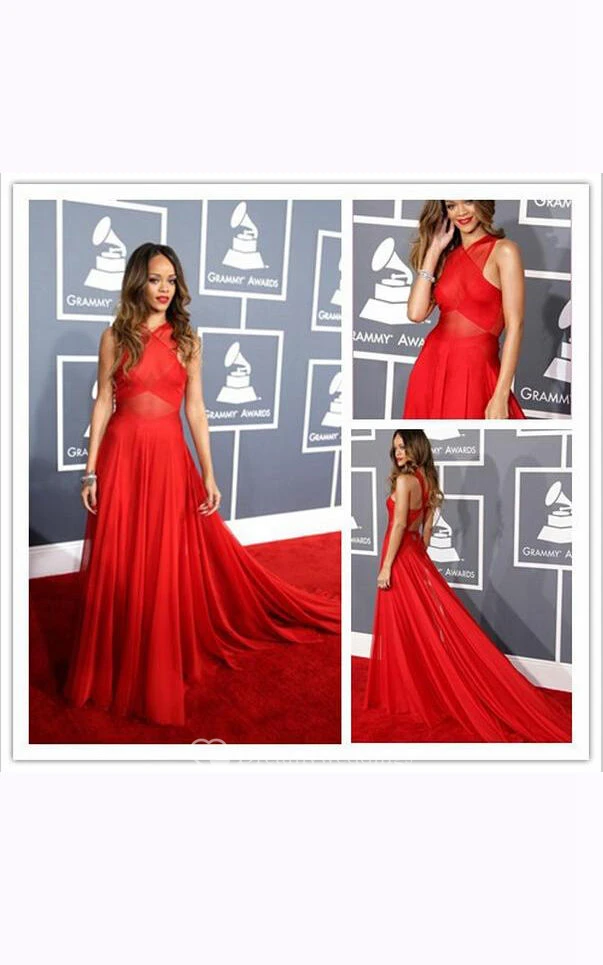 Sleeveless A-line Long Chiffon Gown with Crisscross Ruching