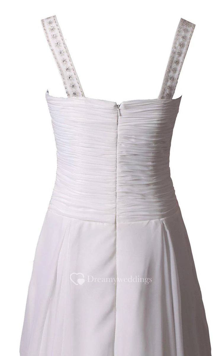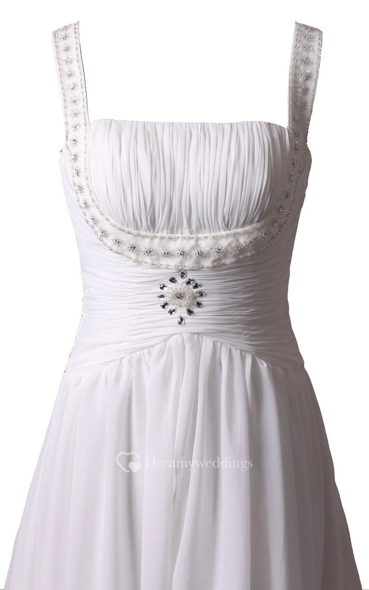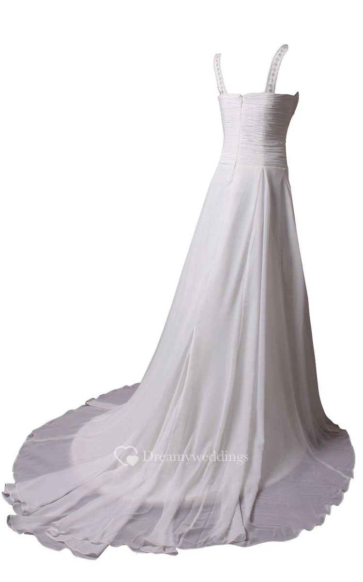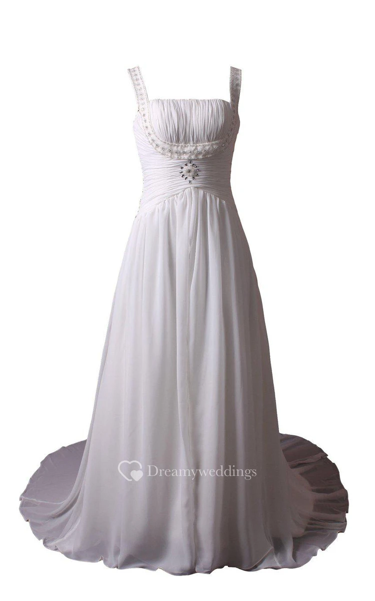 Sleeveless A-line Long Dress With Pleats and Beadings