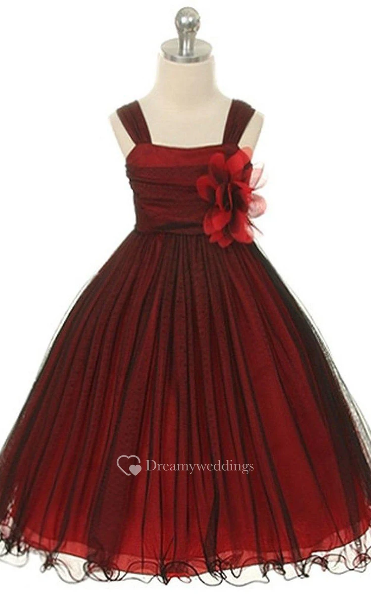 Sleeveless A-line Organza Dress With Flower and Straps