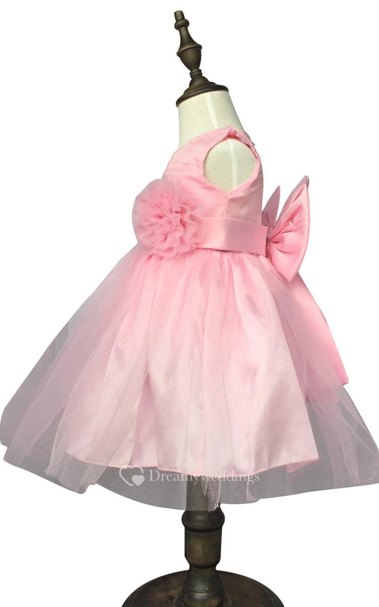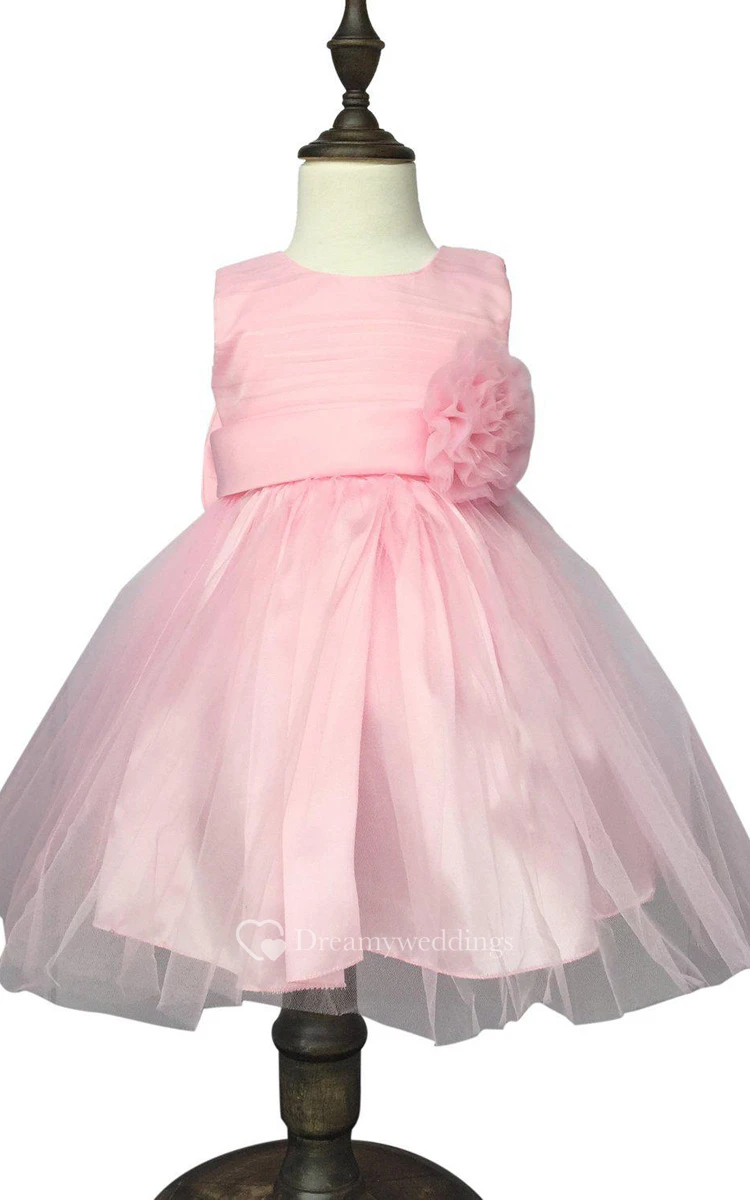 Sleeveless A-line Pleated Dress With Flower and Bow