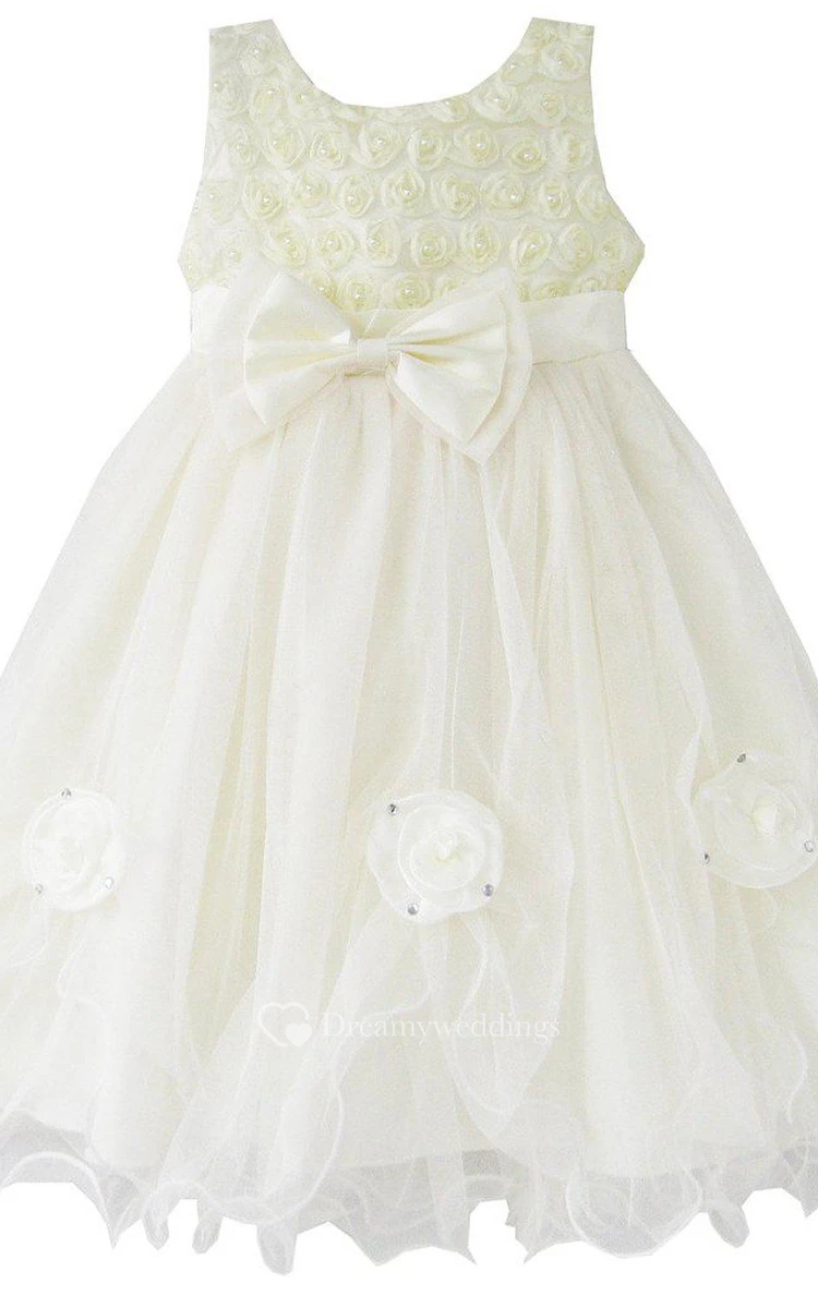 Sleeveless A-line Pleated Dress With Flowers and Bow