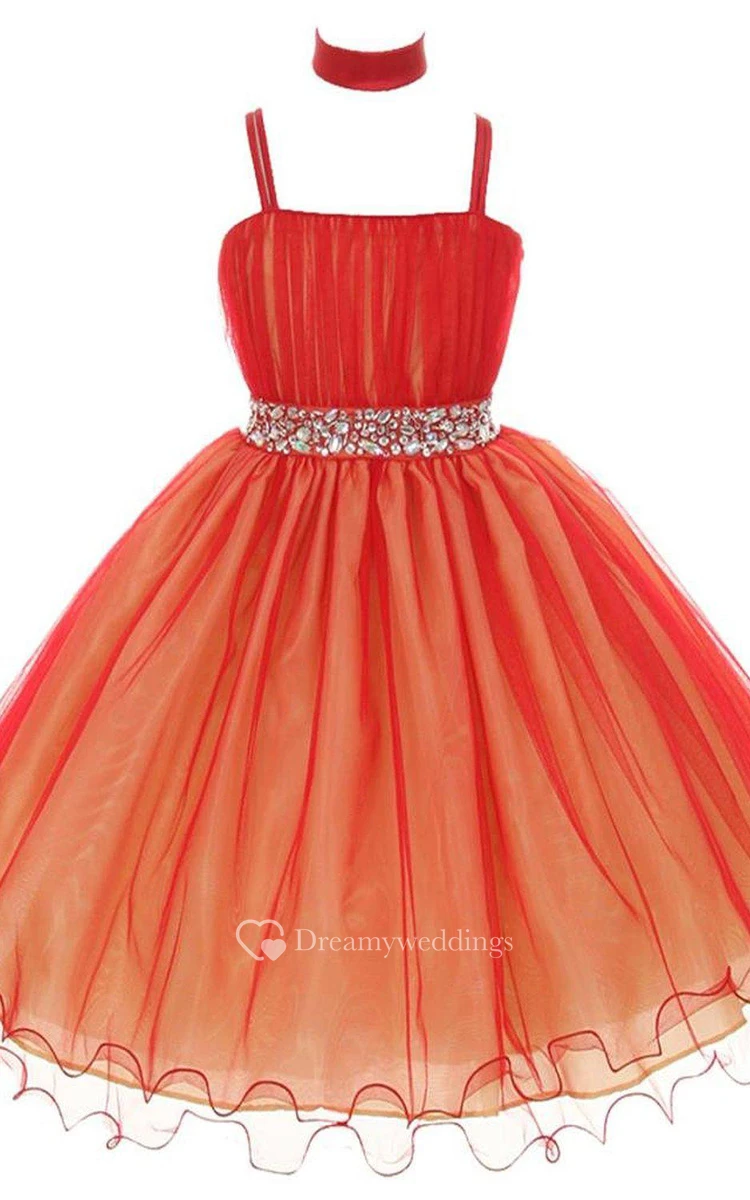 Sleeveless A-line Pleated Organza Dress With Spaghetti Straps