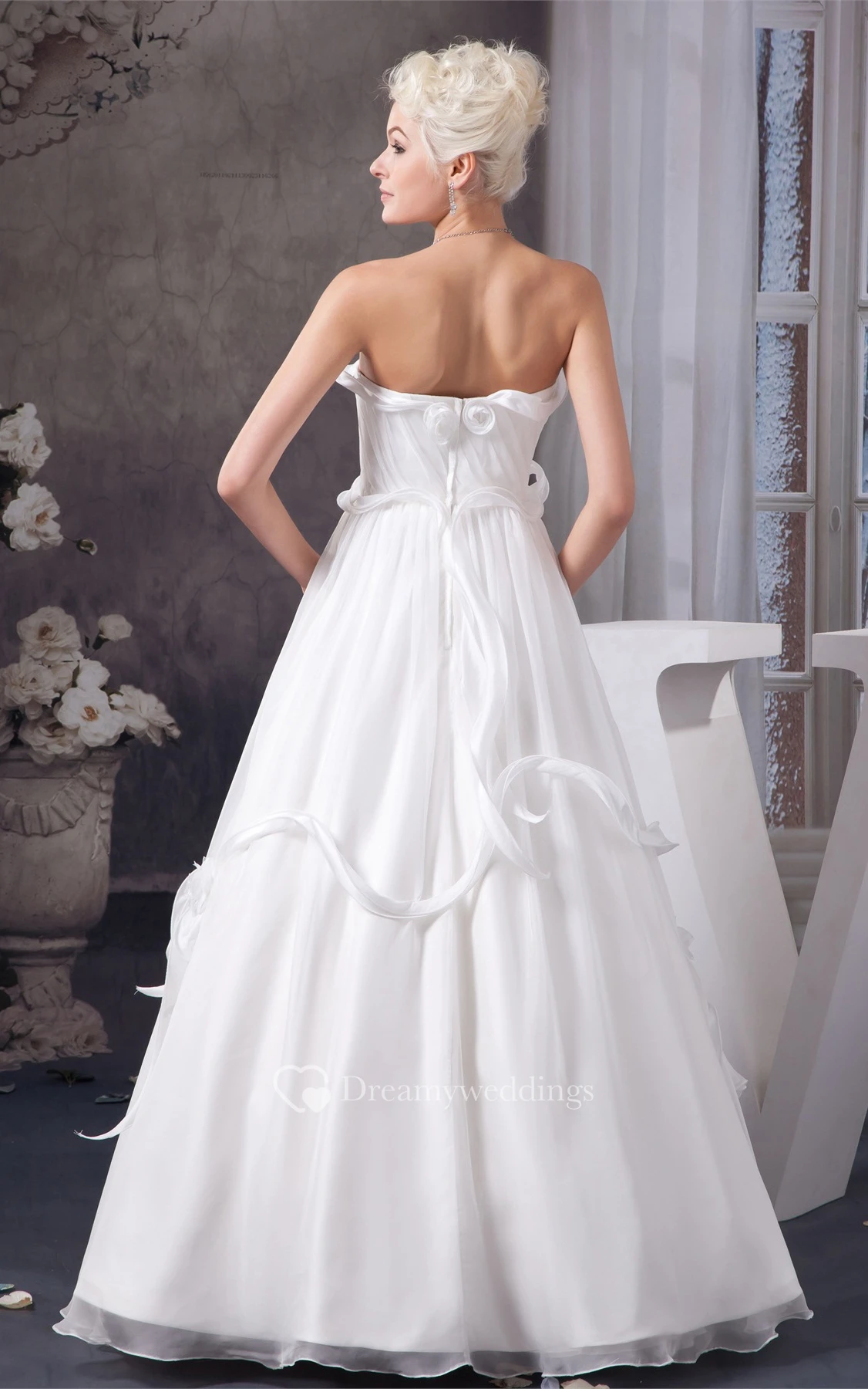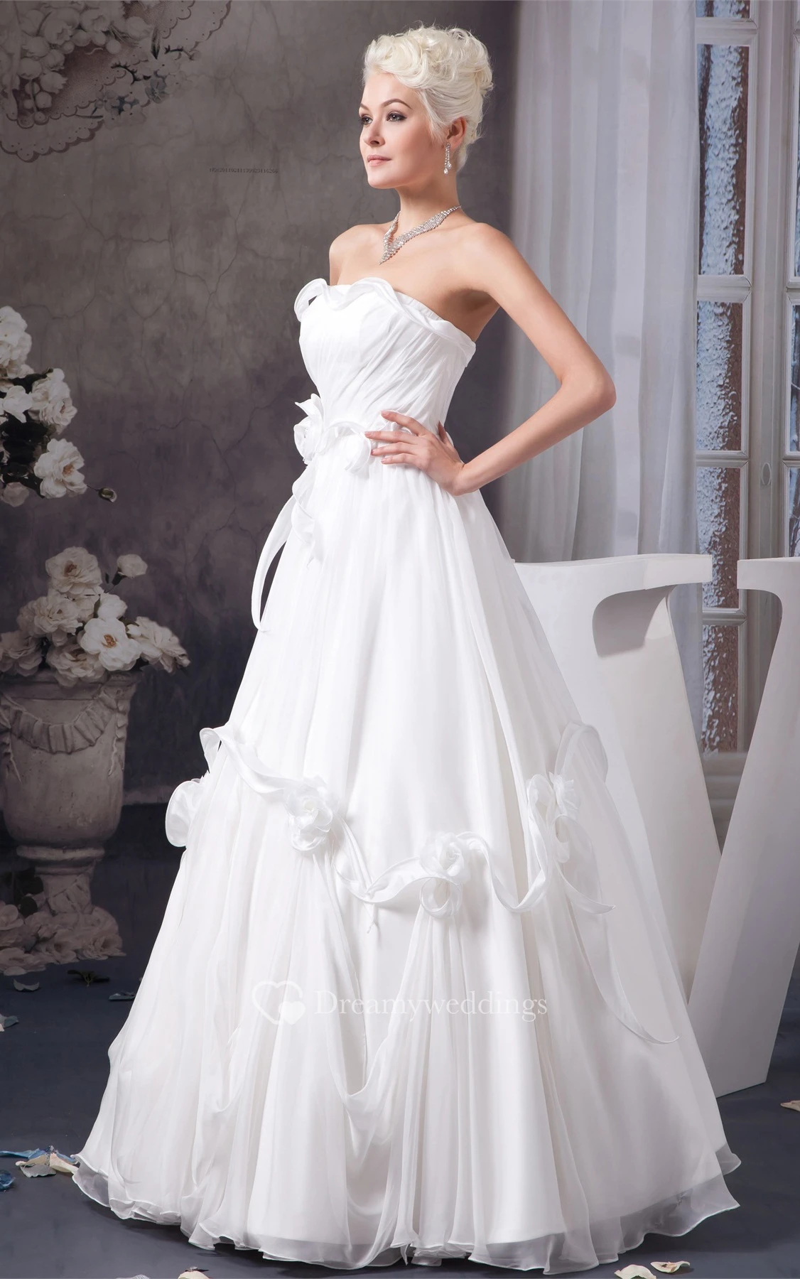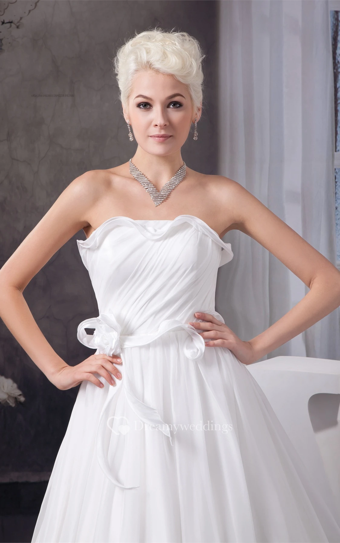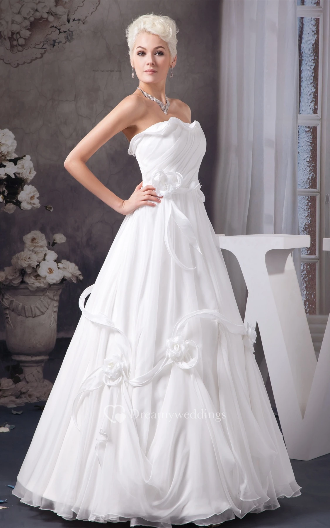Sleeveless A-Line Ruched Bow and Gown With Flower