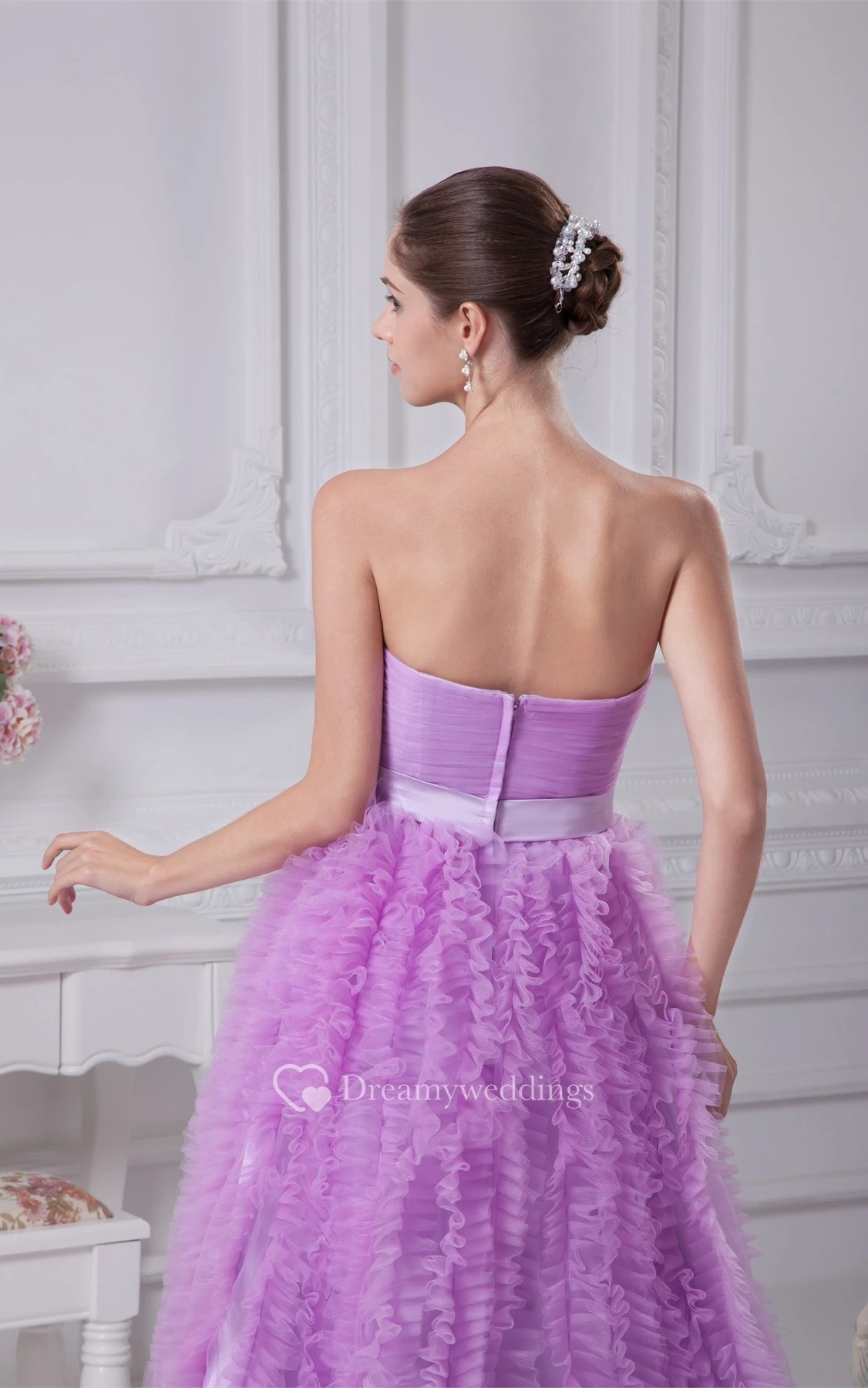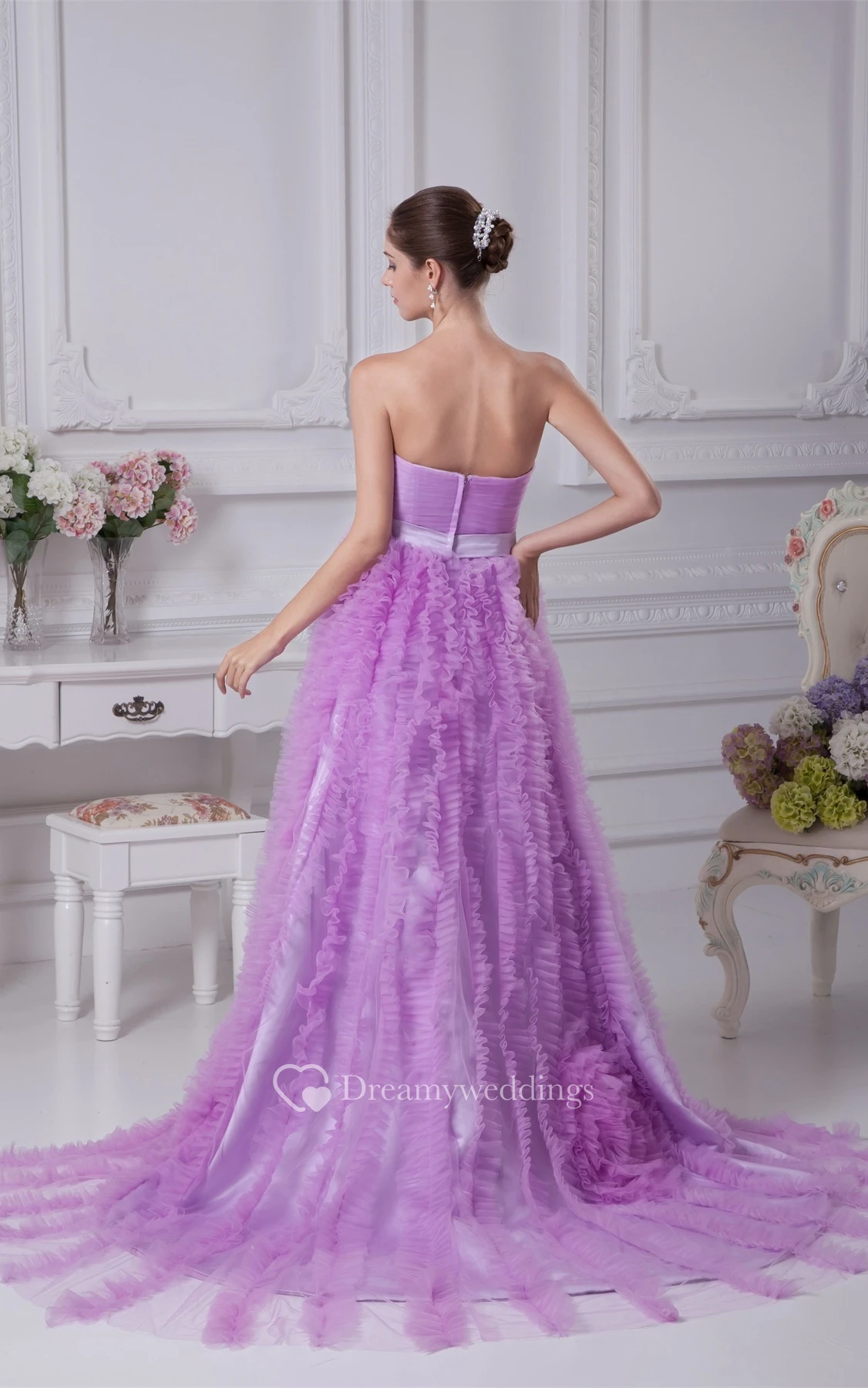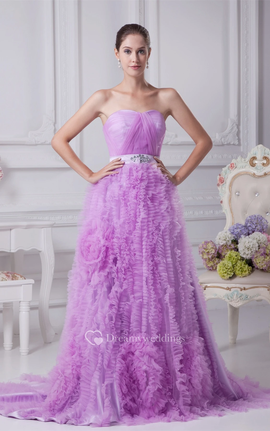 Sleeveless A-Line Ruched Broach and Gown With Ruffles