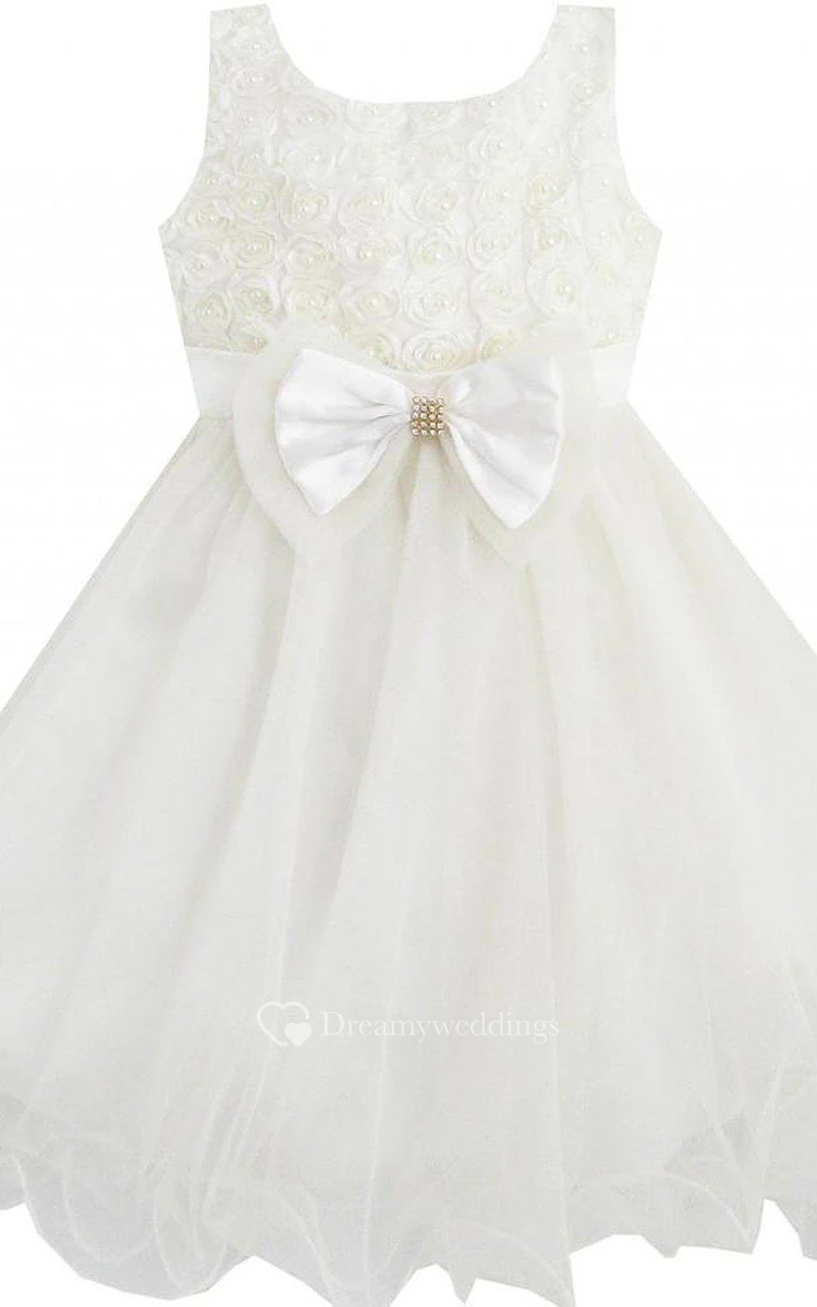 Sleeveless A-line Ruched Dress With Beadings and Bow