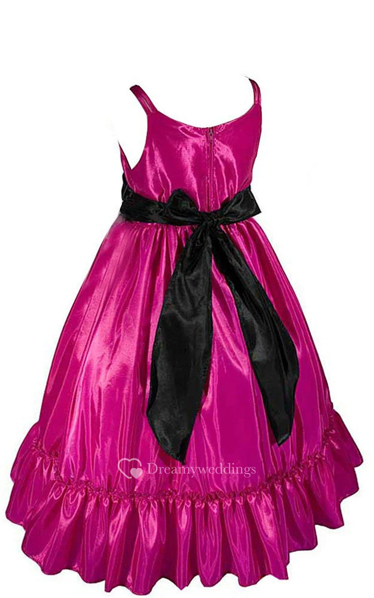 Sleeveless A-line Ruched Dress With Spaghetti Straps and Bow