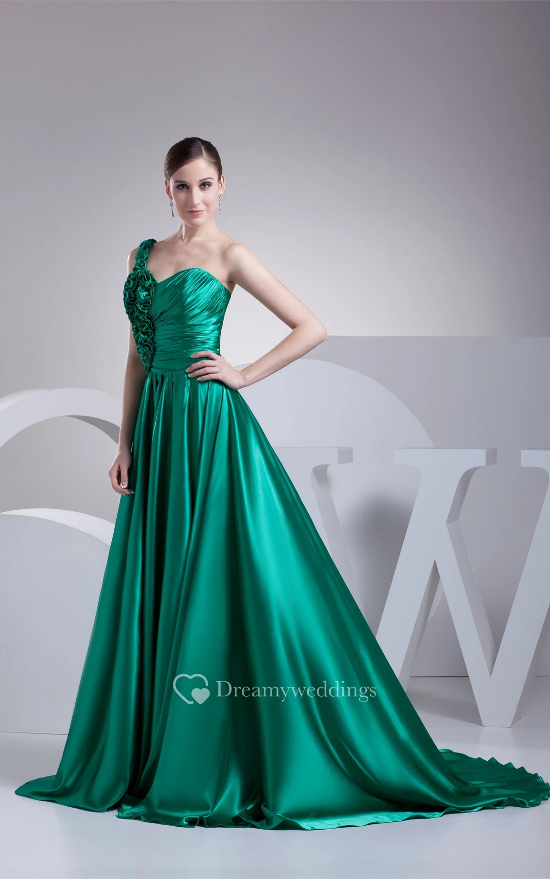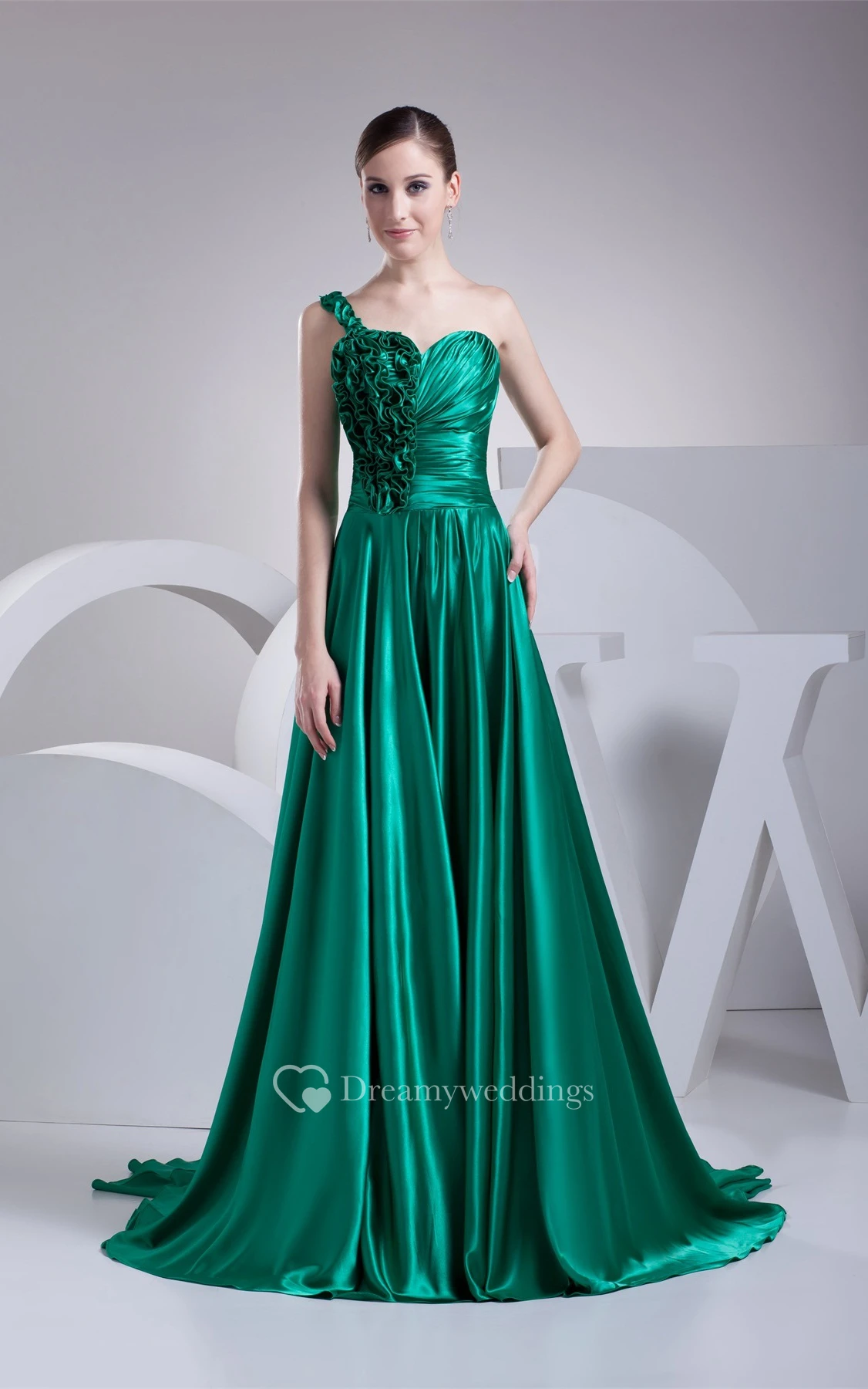 Sleeveless A-Line Ruffled Brush Train and Gown With Pleats