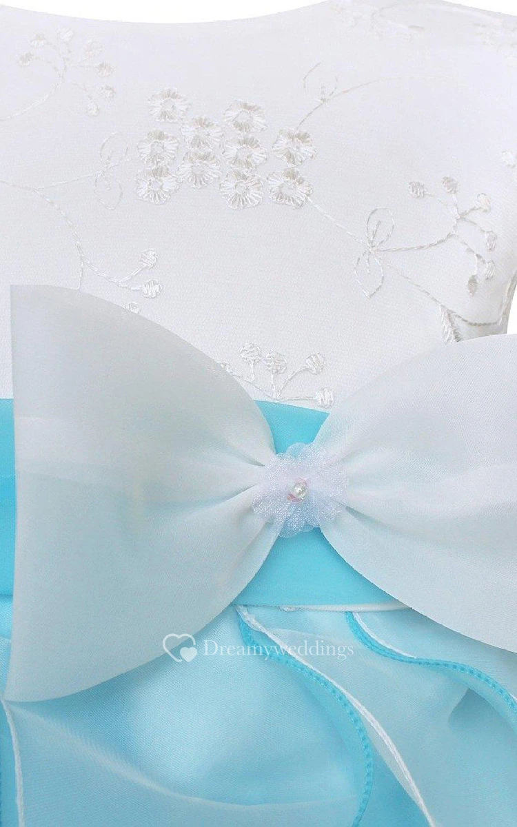 Sleeveless A-line Ruffled Dress With Bow and Appliques