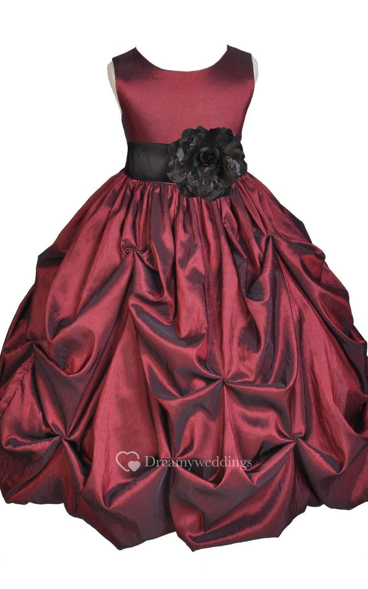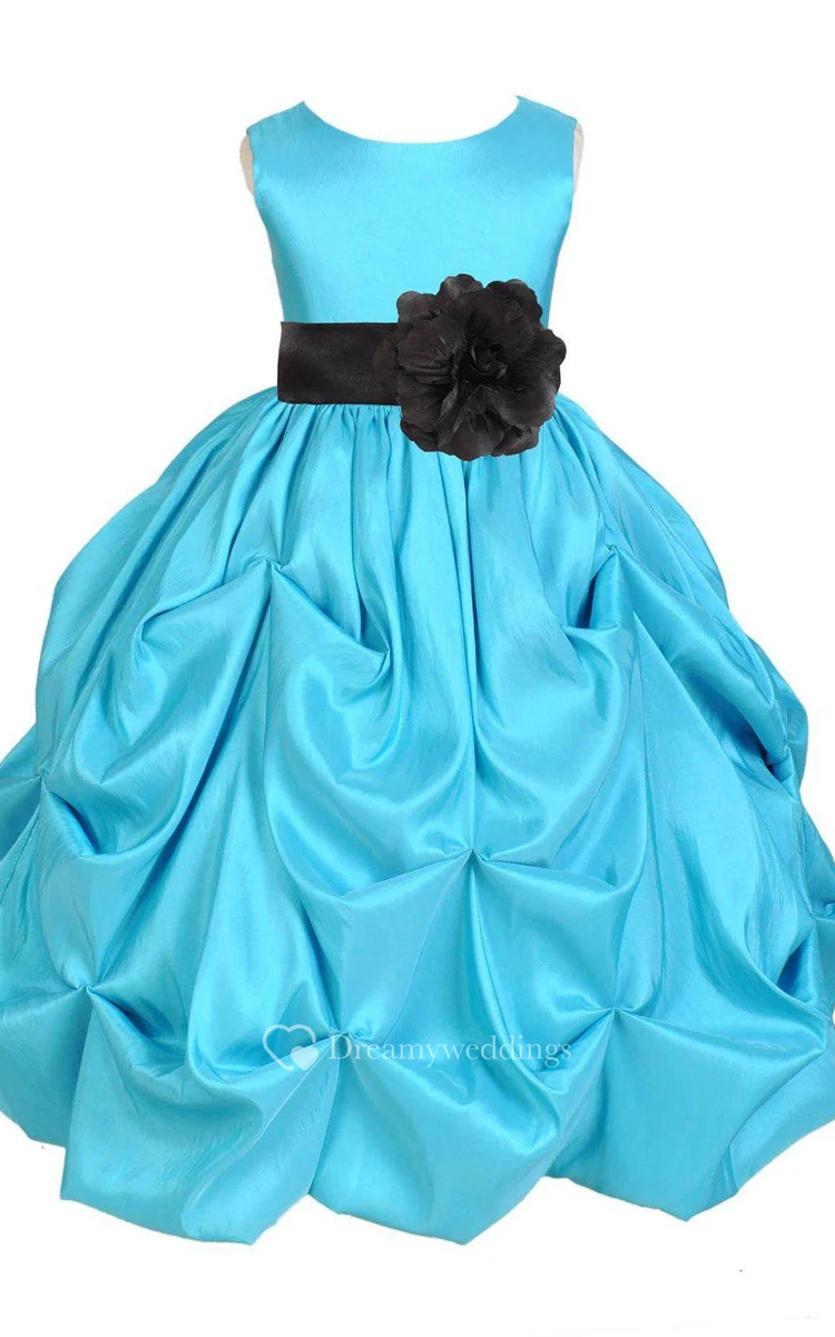 Sleeveless A-line Ruffled Dress With Flower and Bow