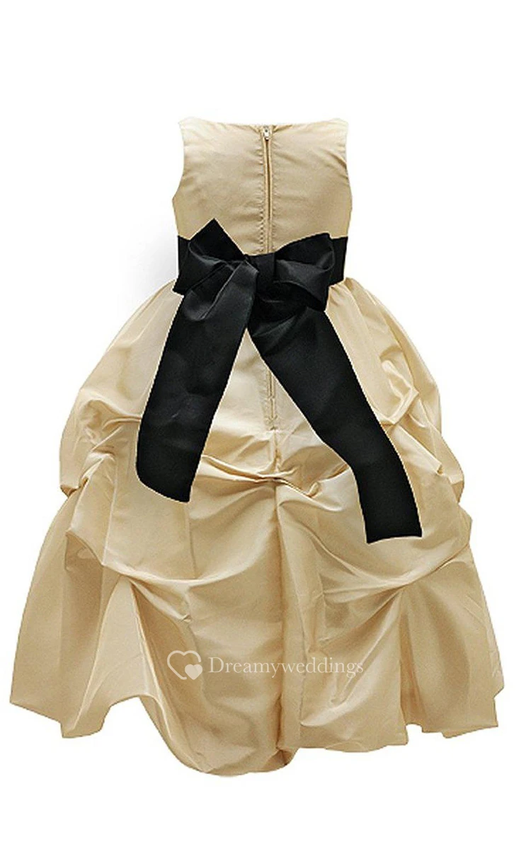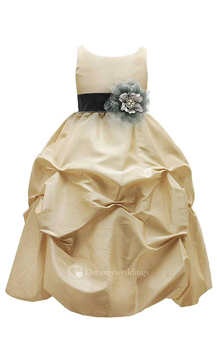 Sleeveless A-line Ruffled Dress With Flowers and Bow