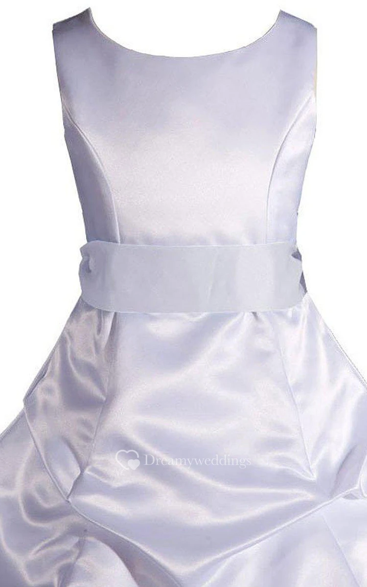 Sleeveless A-line Ruffled Taffeta Dress With Bow