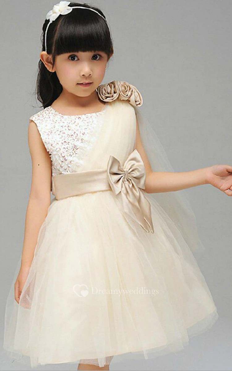 Sleeveless A-line Sequined Dress With Bow and Flower