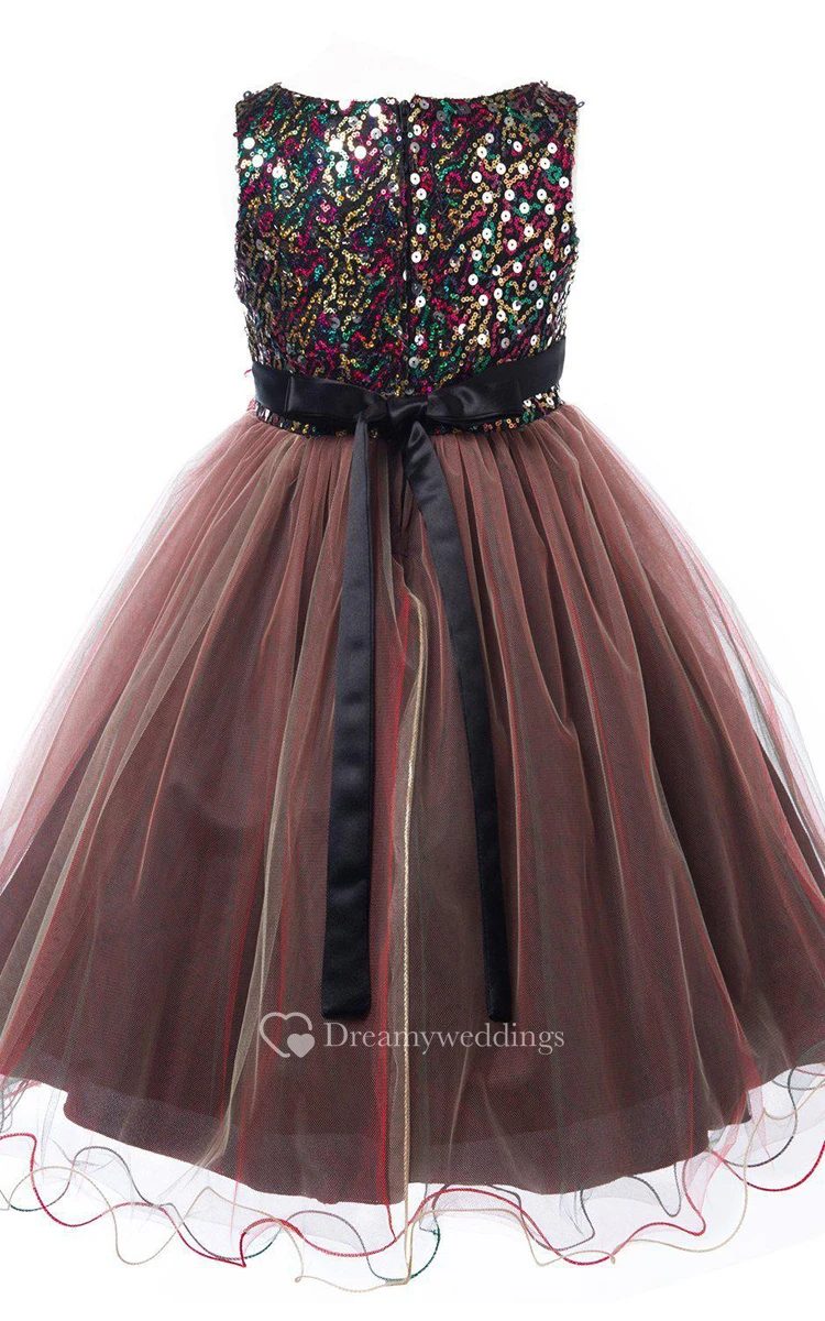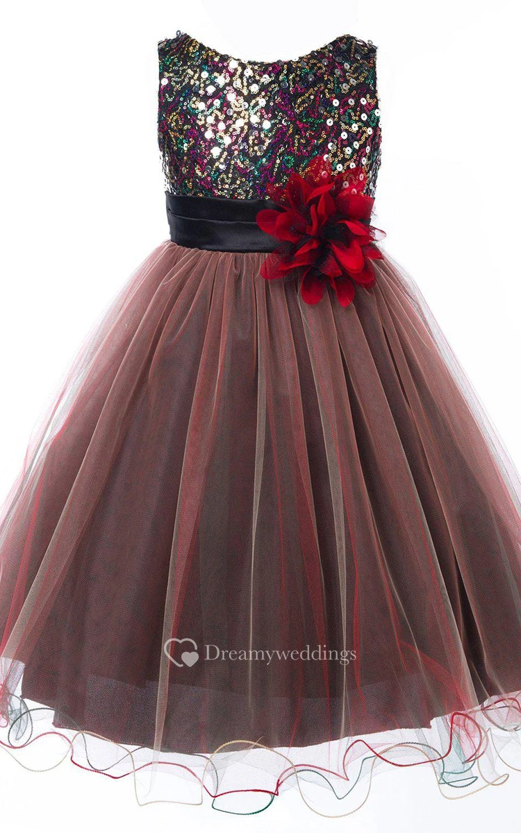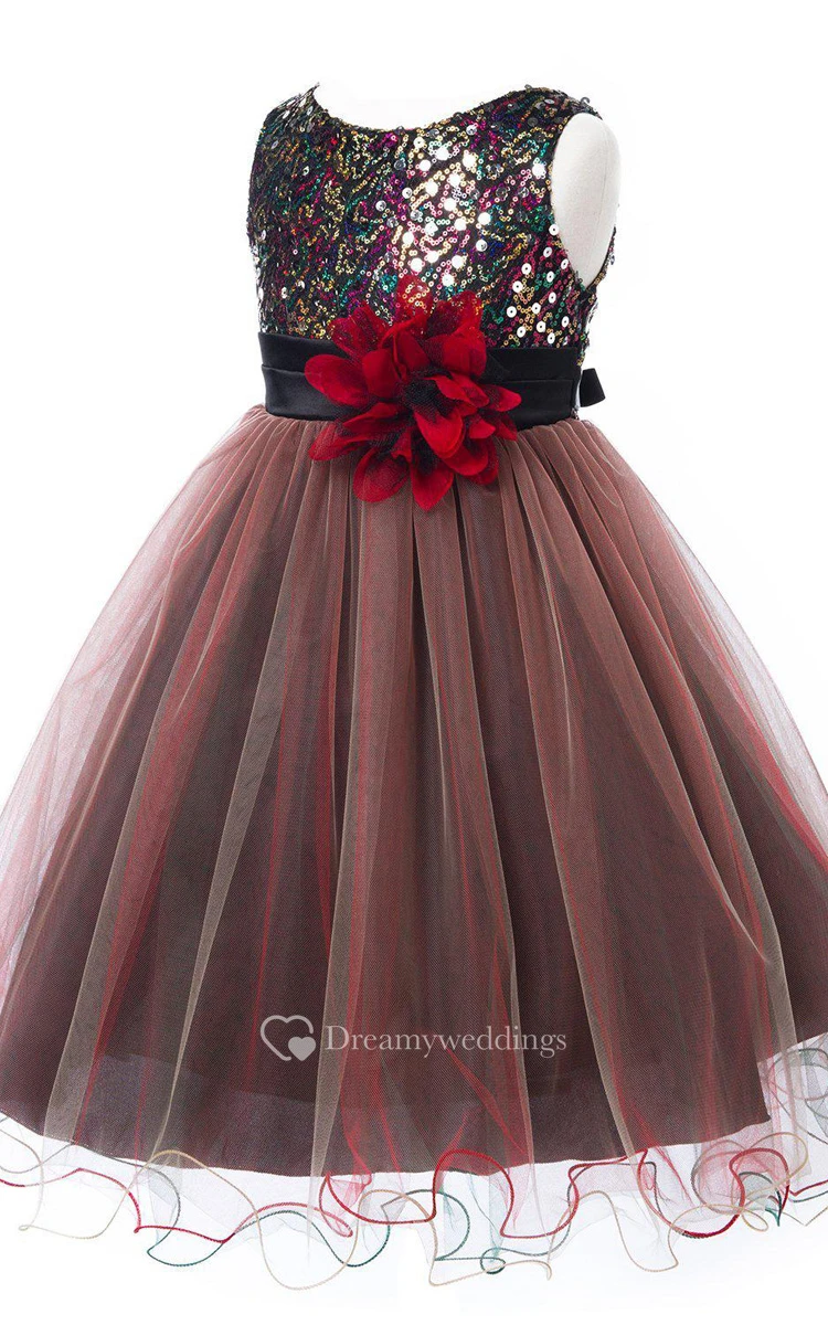 Sleeveless A-line Sequined Dress With Flower and Bow