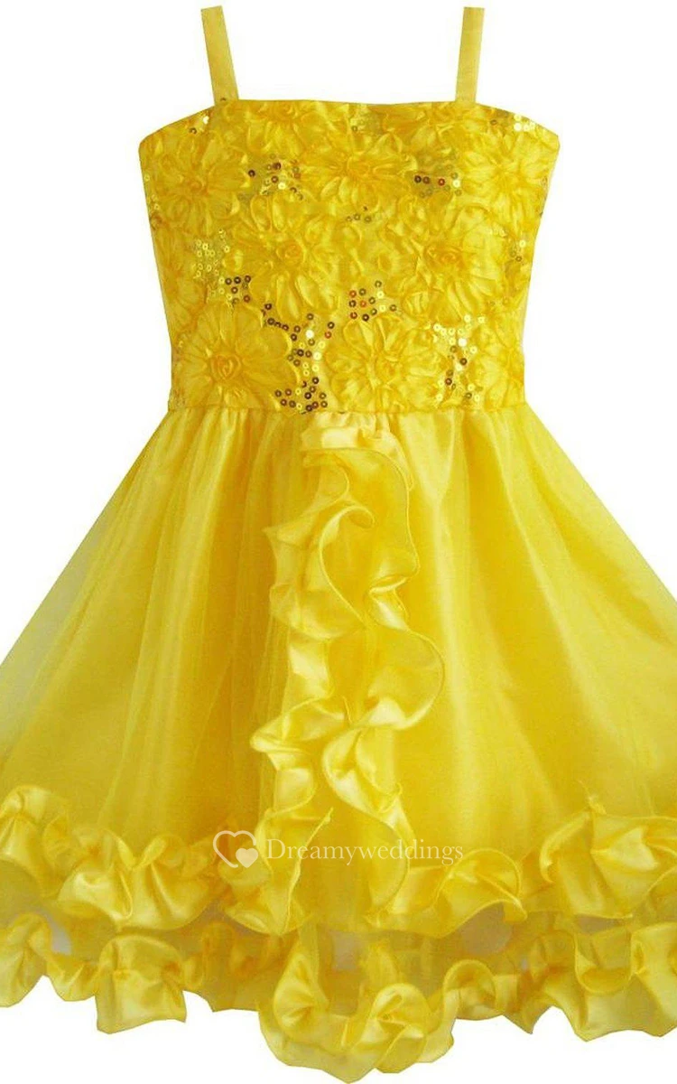 Sleeveless A-line Sequined Dress With Ruffles and Bow
