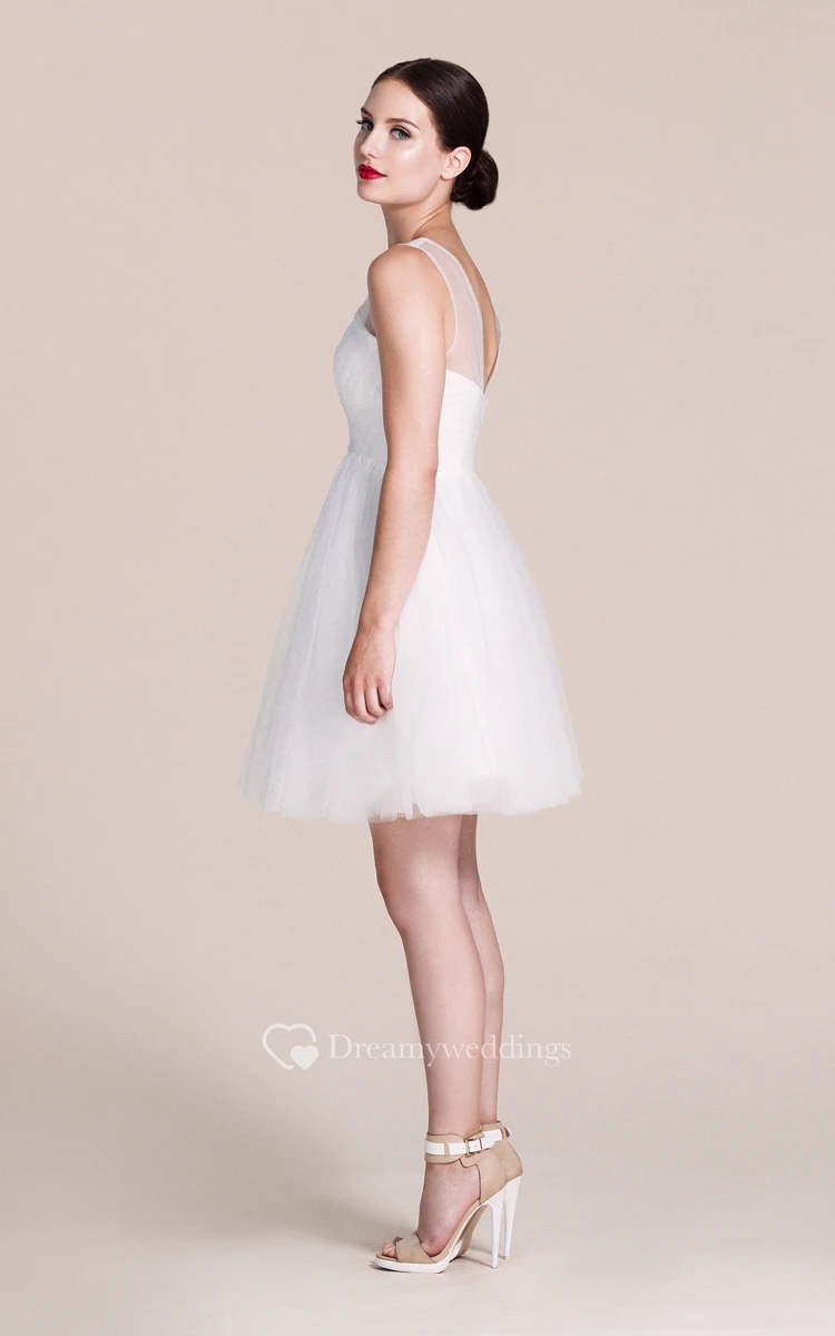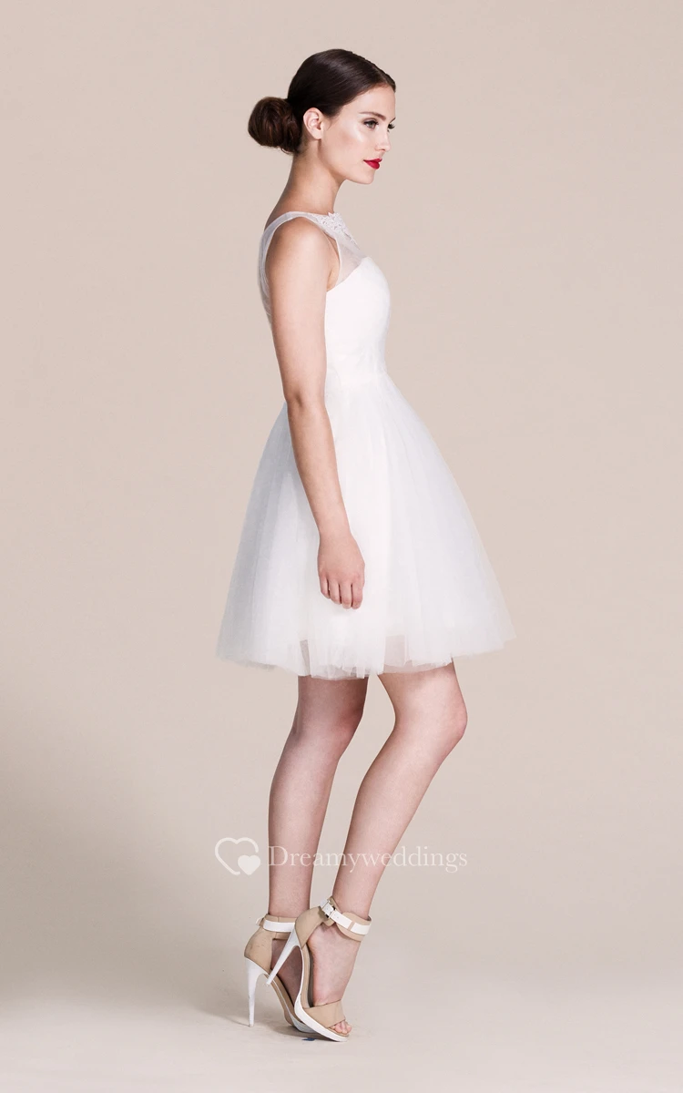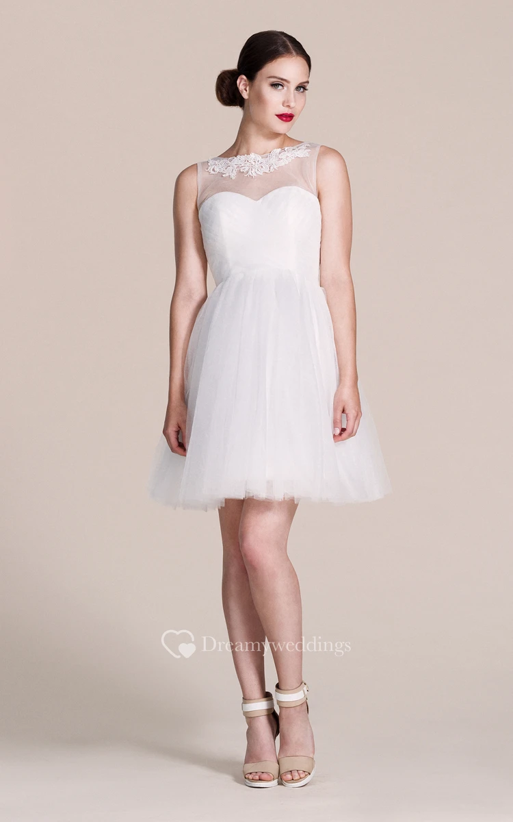 Sleeveless A-line Short Dress With Illusion Neck