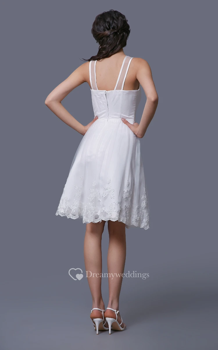 Sleeveless A-Line Short Dress With Illusion Straps and Lace Appliques
