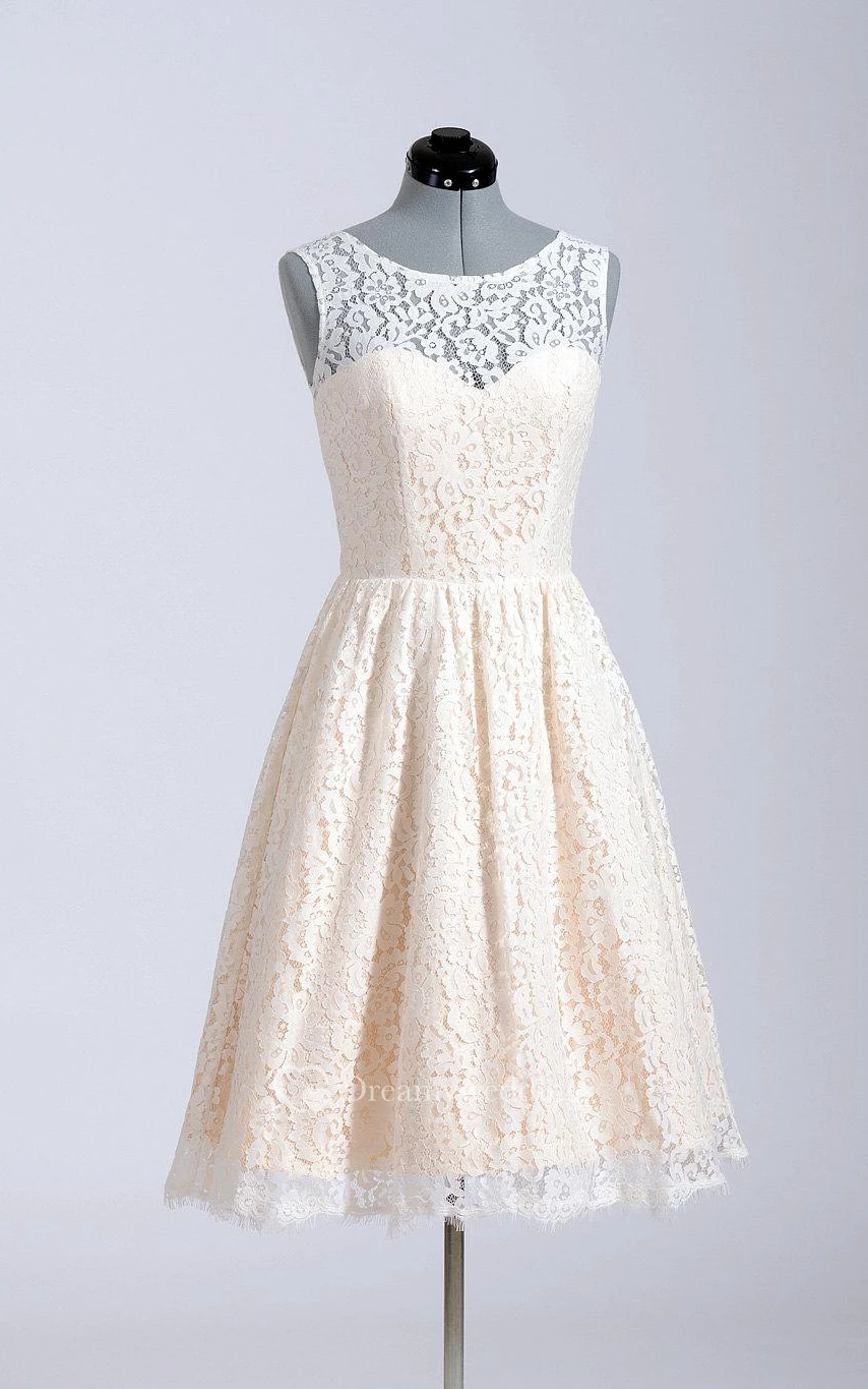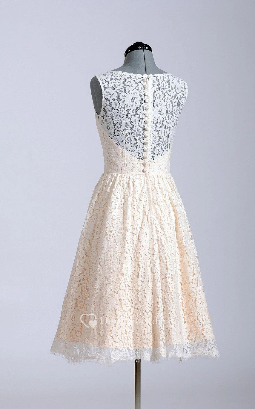 Sleeveless A-Line Short Lace Dress With Illusion Back