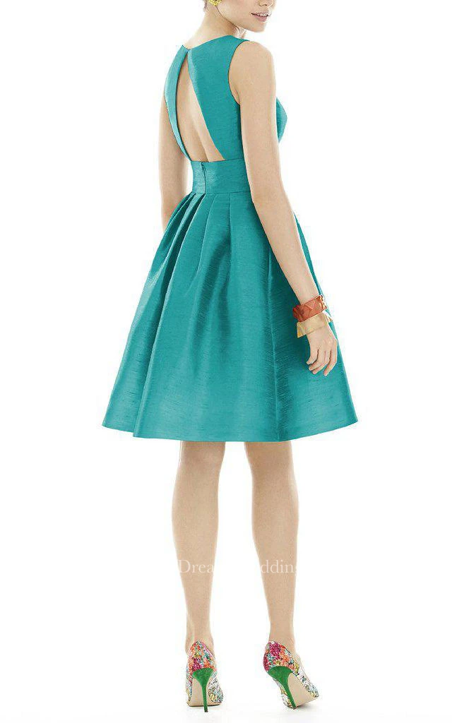 Sleeveless A-line Short Satin Dress with Keyhole Back