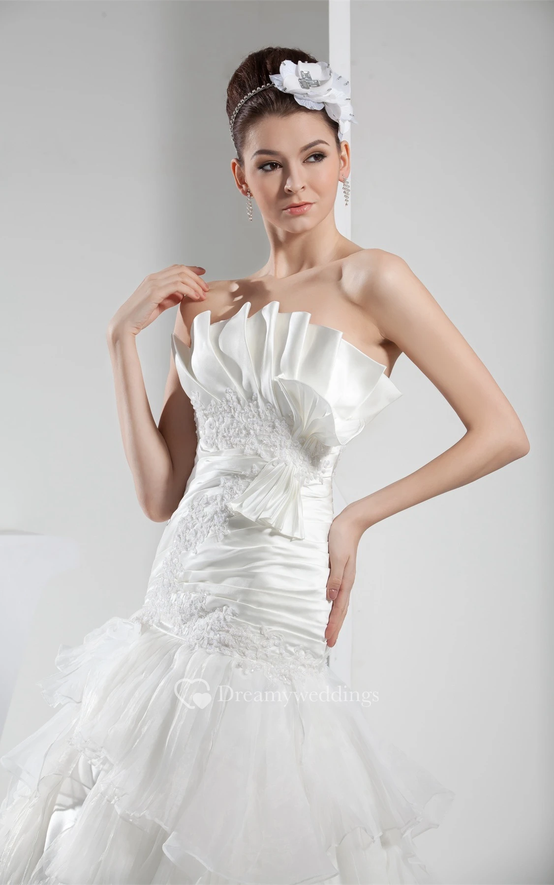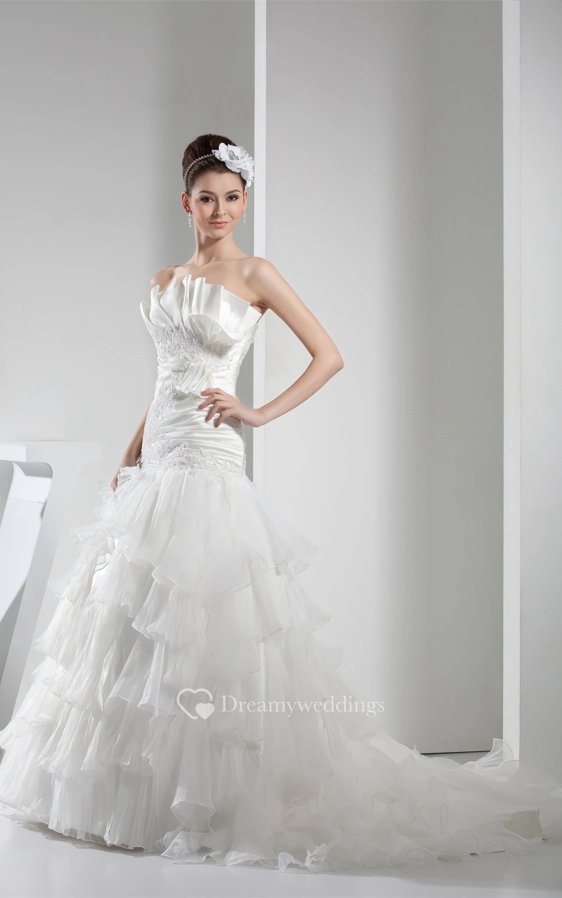 Sleeveless A-Line Tiered Appliques and Ball-Gown With Bow