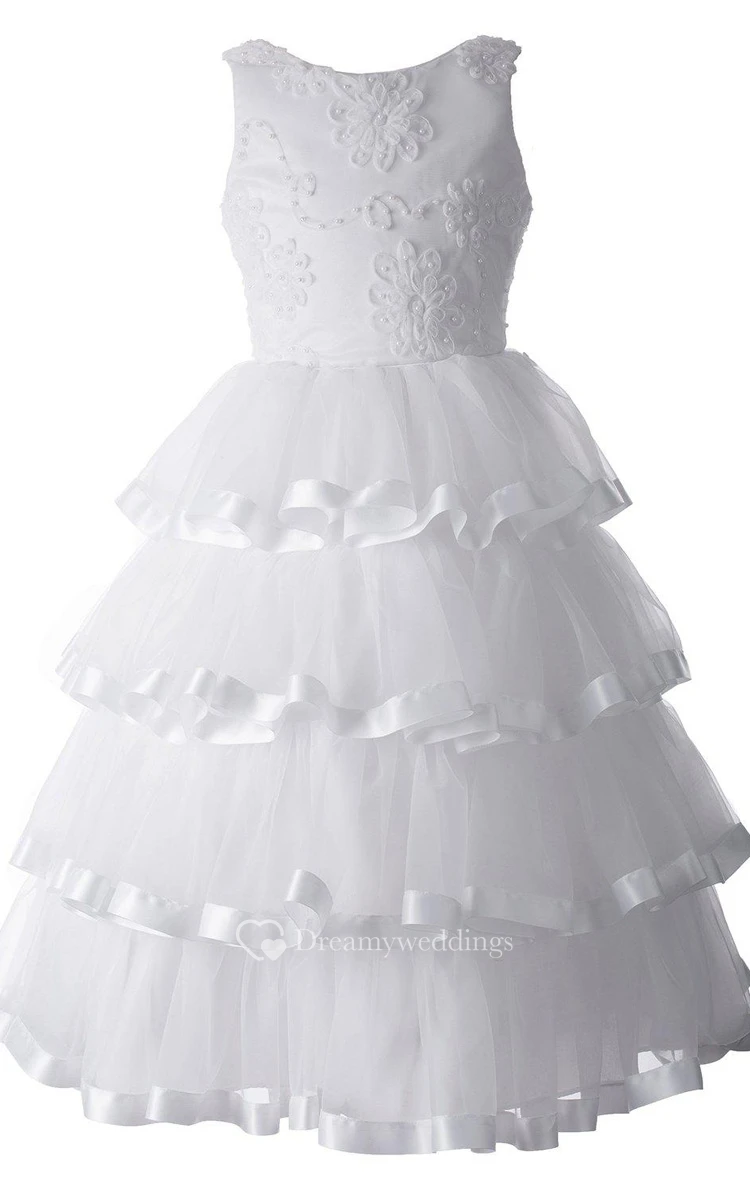 Sleeveless A-line Tiered Dress With Appliques and Beadings