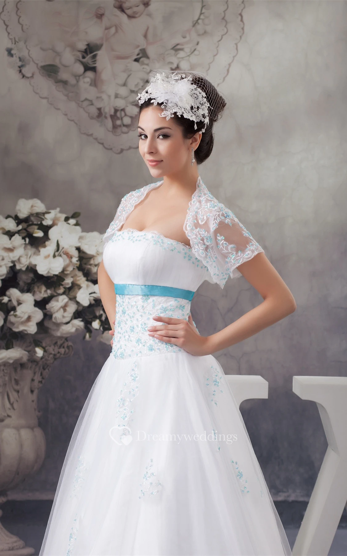 Sleeveless A-Line Tulle Bolero and Dress With Appliques