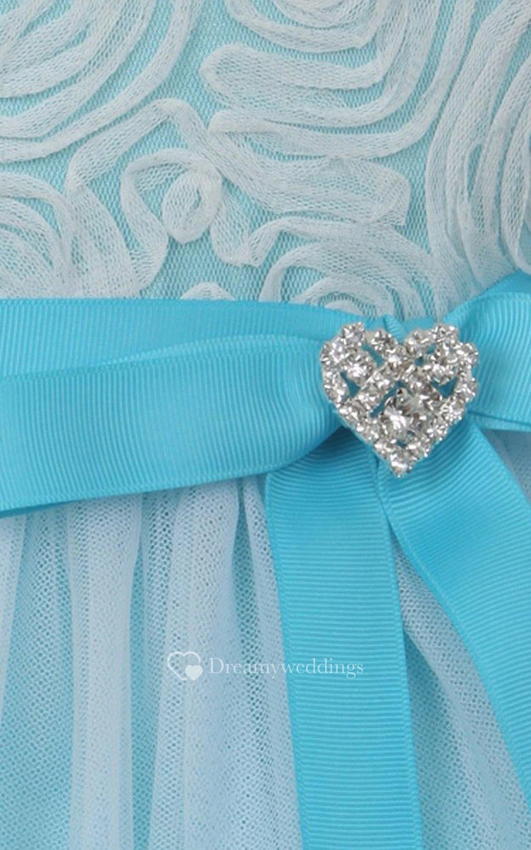 Sleeveless A-line Tulle Dress With Pleats and Bow
