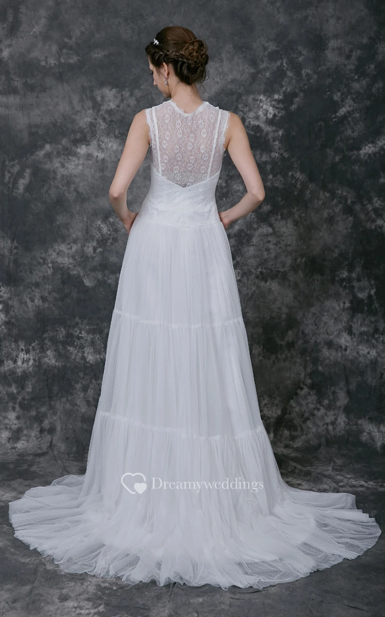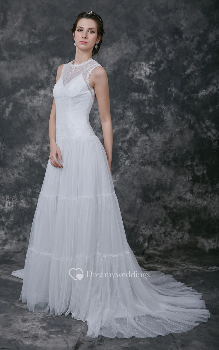 Sleeveless A-line Tulle Gown With Sheer High Neck