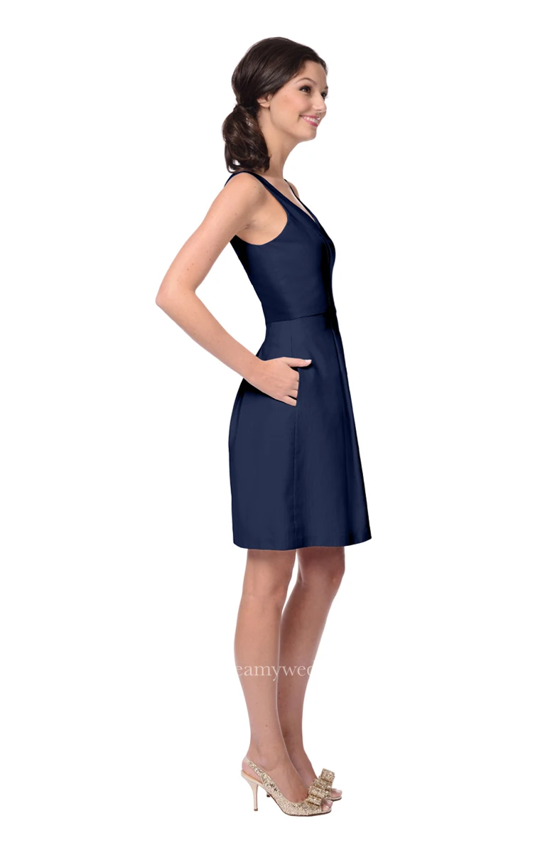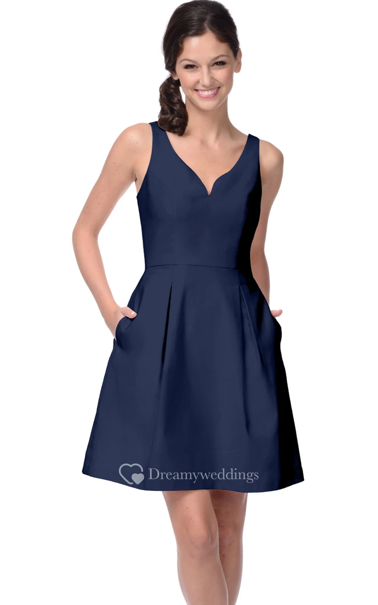 Sleeveless A-Line V-Neck Dress With Zipper Back