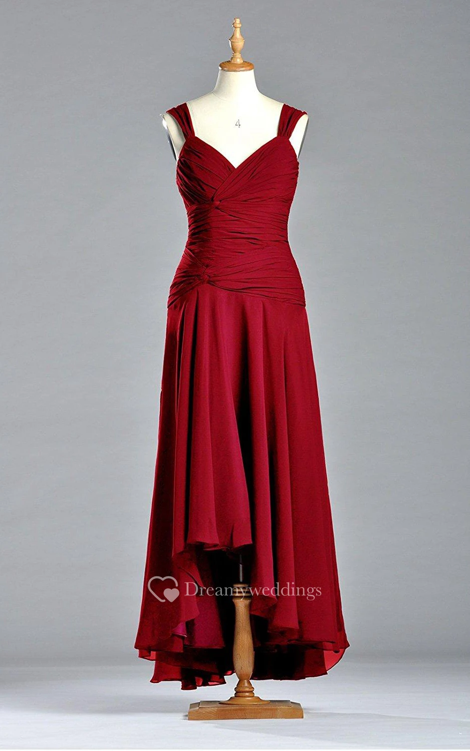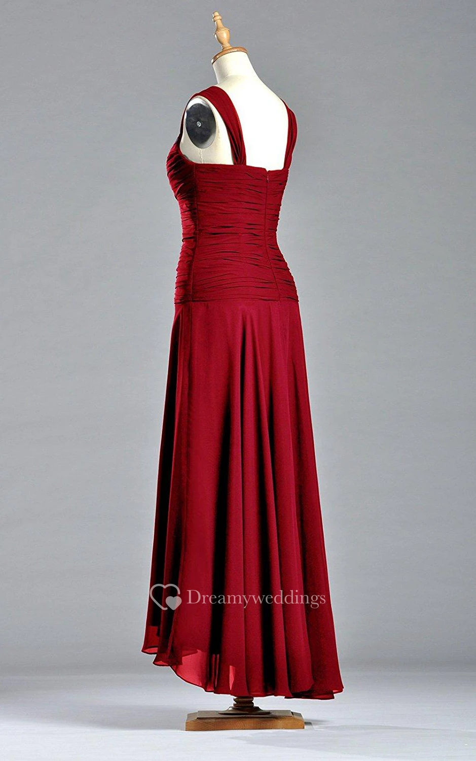 Sleeveless A-line V-neck Tea-length Chiffon Dress