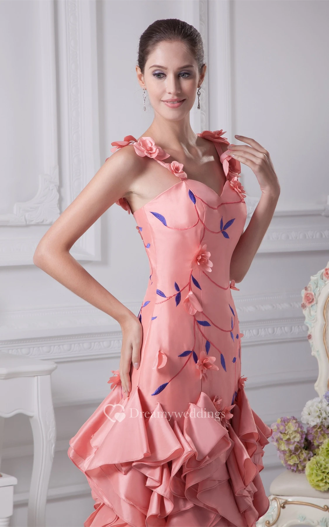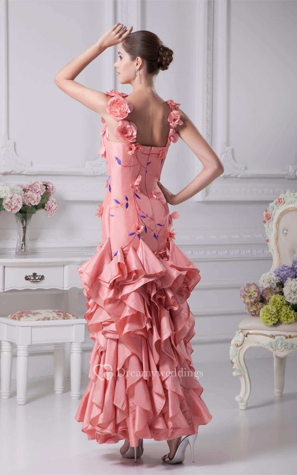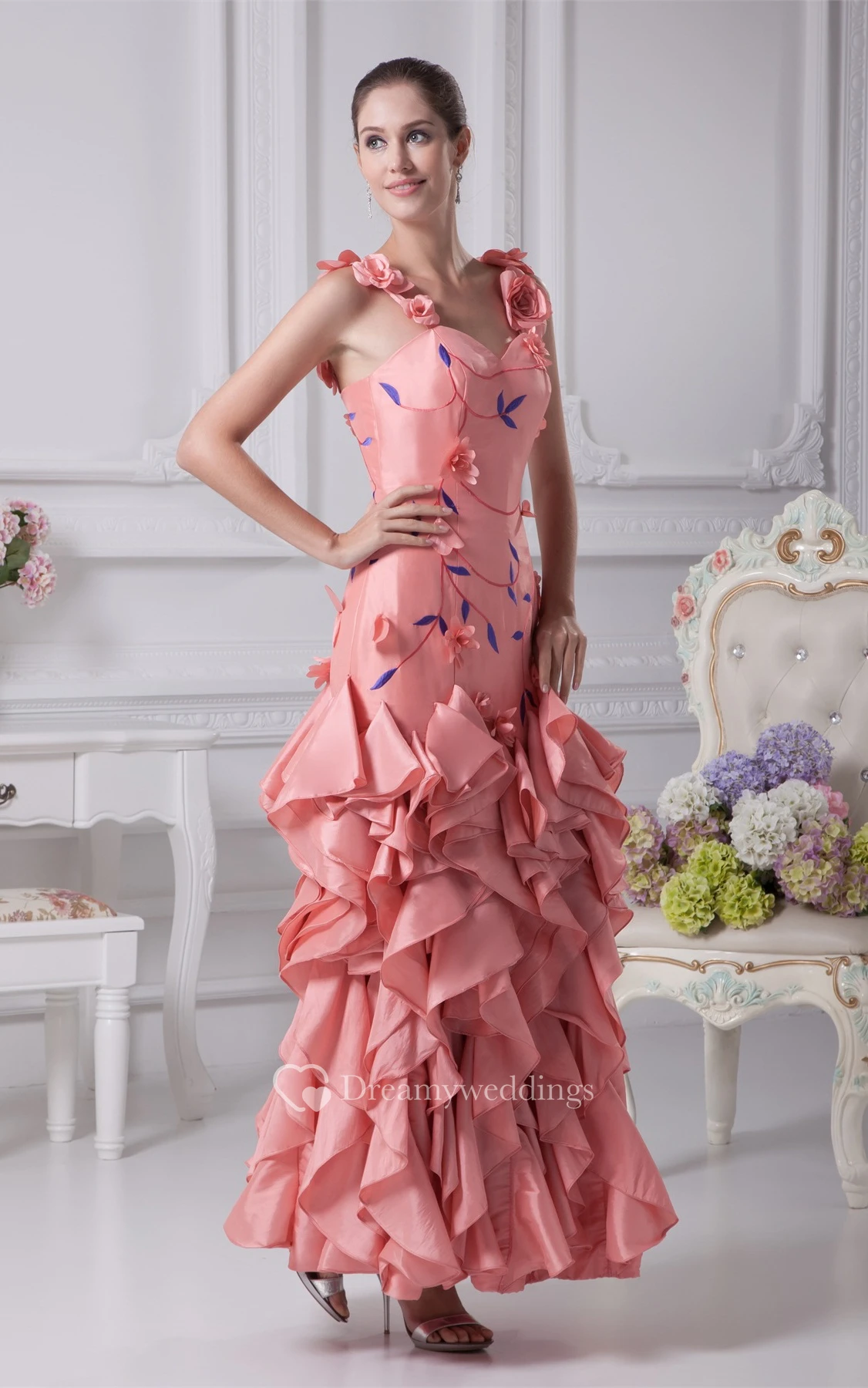 Sleeveless Ankle-Length Embroidered Dress With Cascading Ruffles