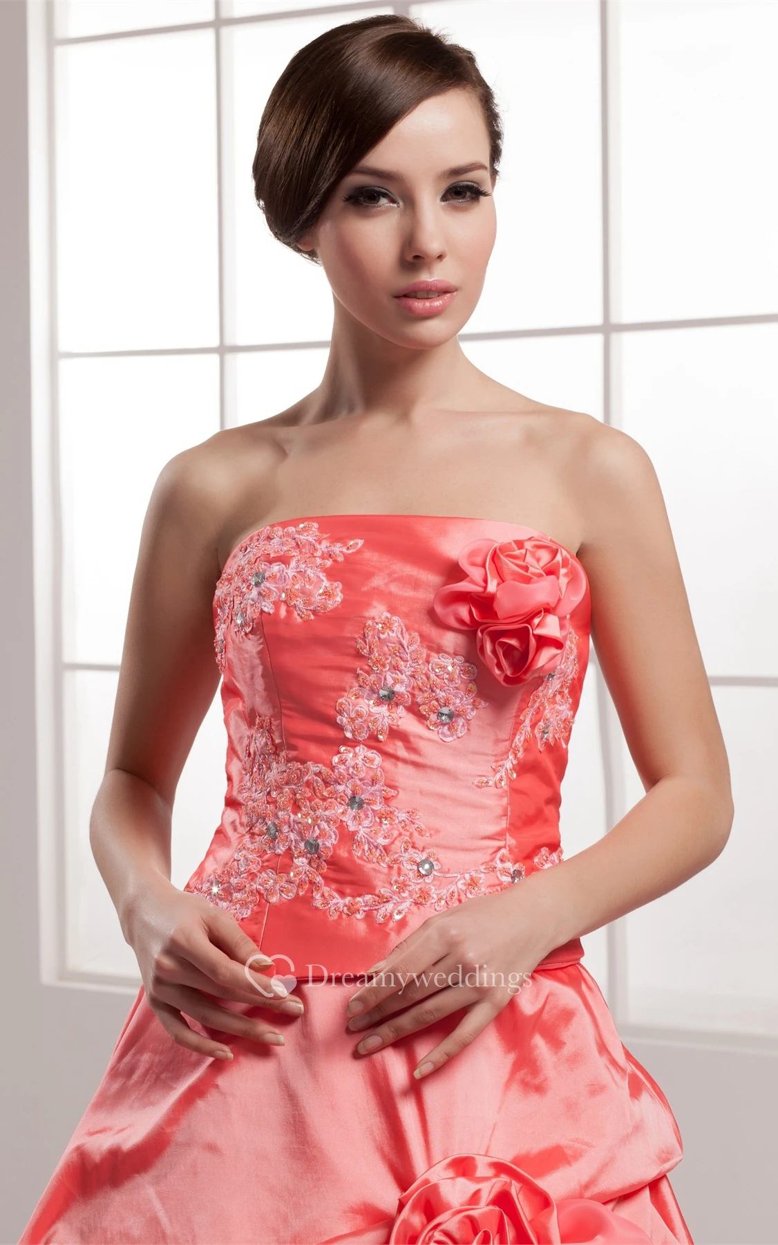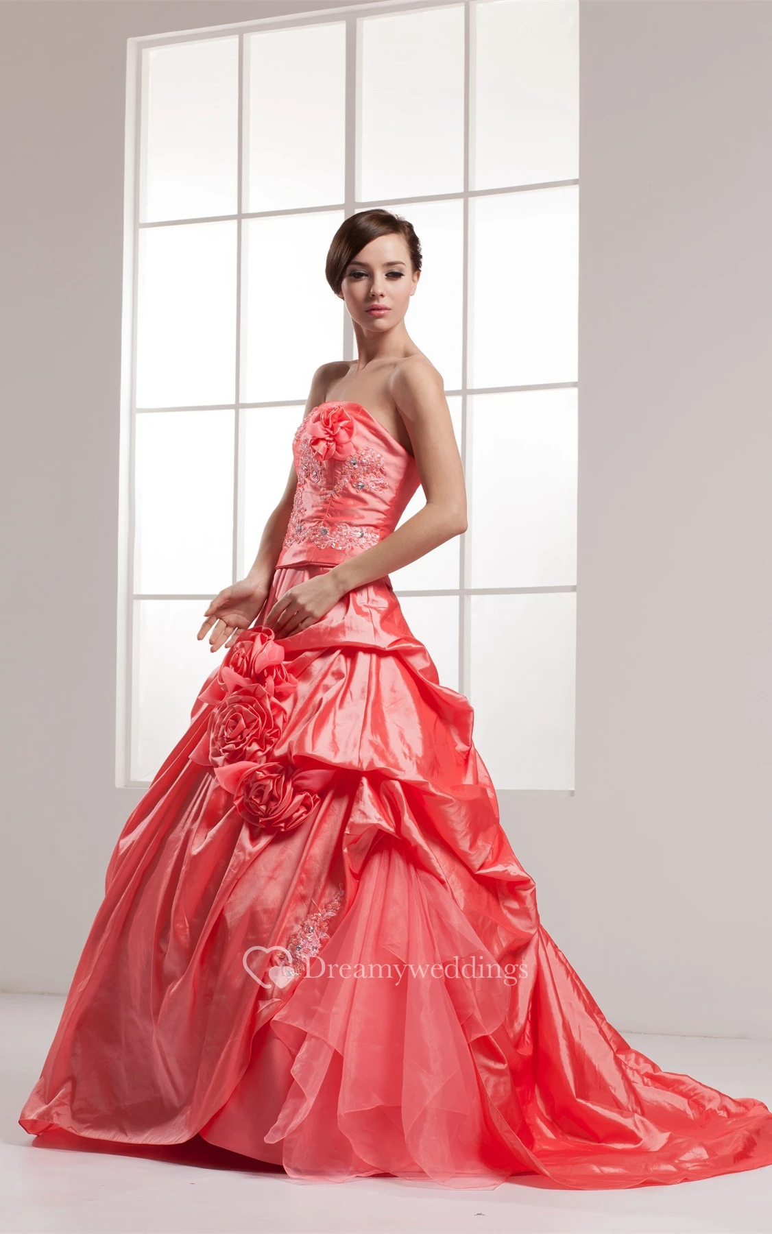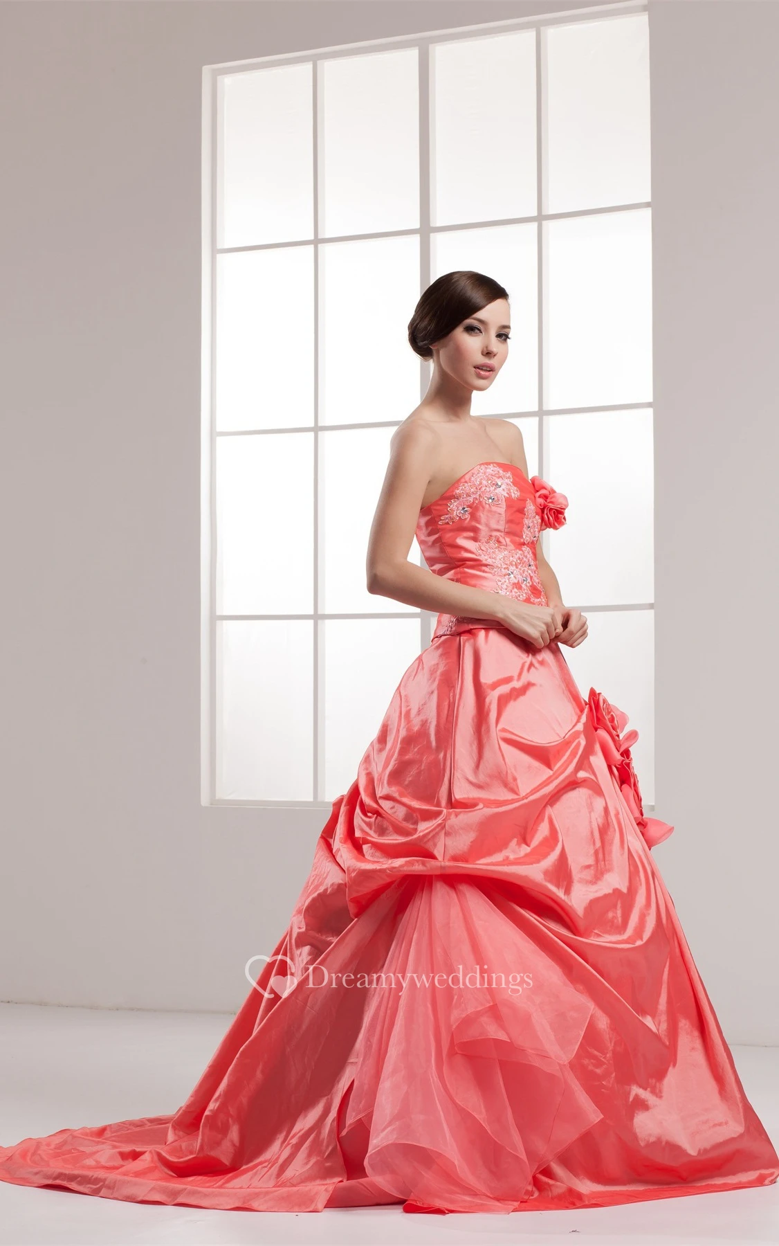 Sleeveless Appliqued Pick-Up Beading and Ball-Gown With Flower