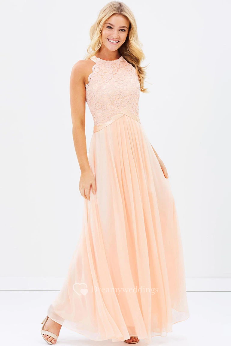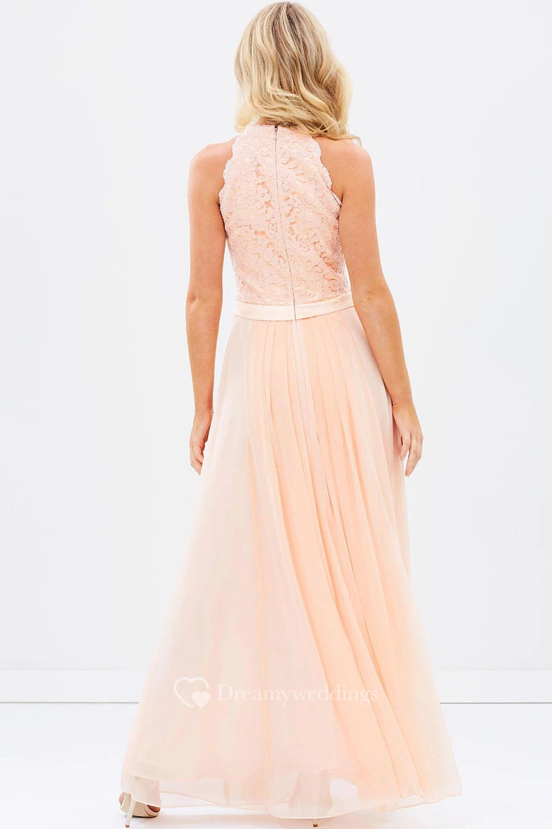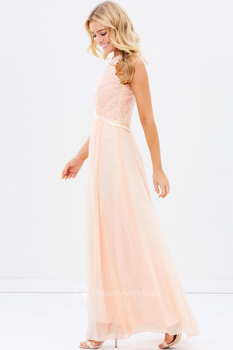 Sleeveless Appliqued Scoop Neck Chiffon Bridesmaid Dress With Ribbon