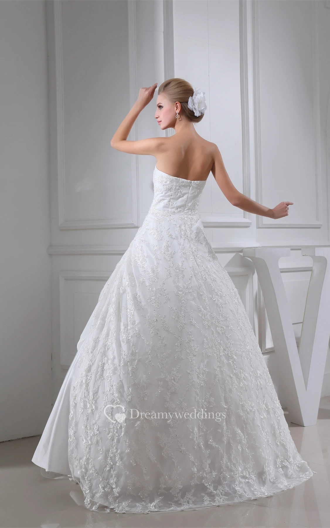 Sleeveless Appliqued Side Draping and Ball-Gown With Ruching