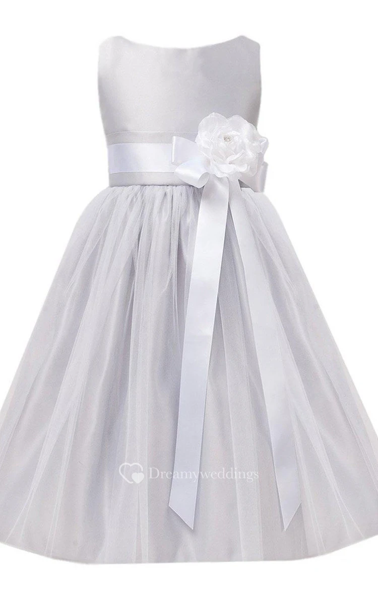 Sleeveless Bateau-neck Dress With Flower