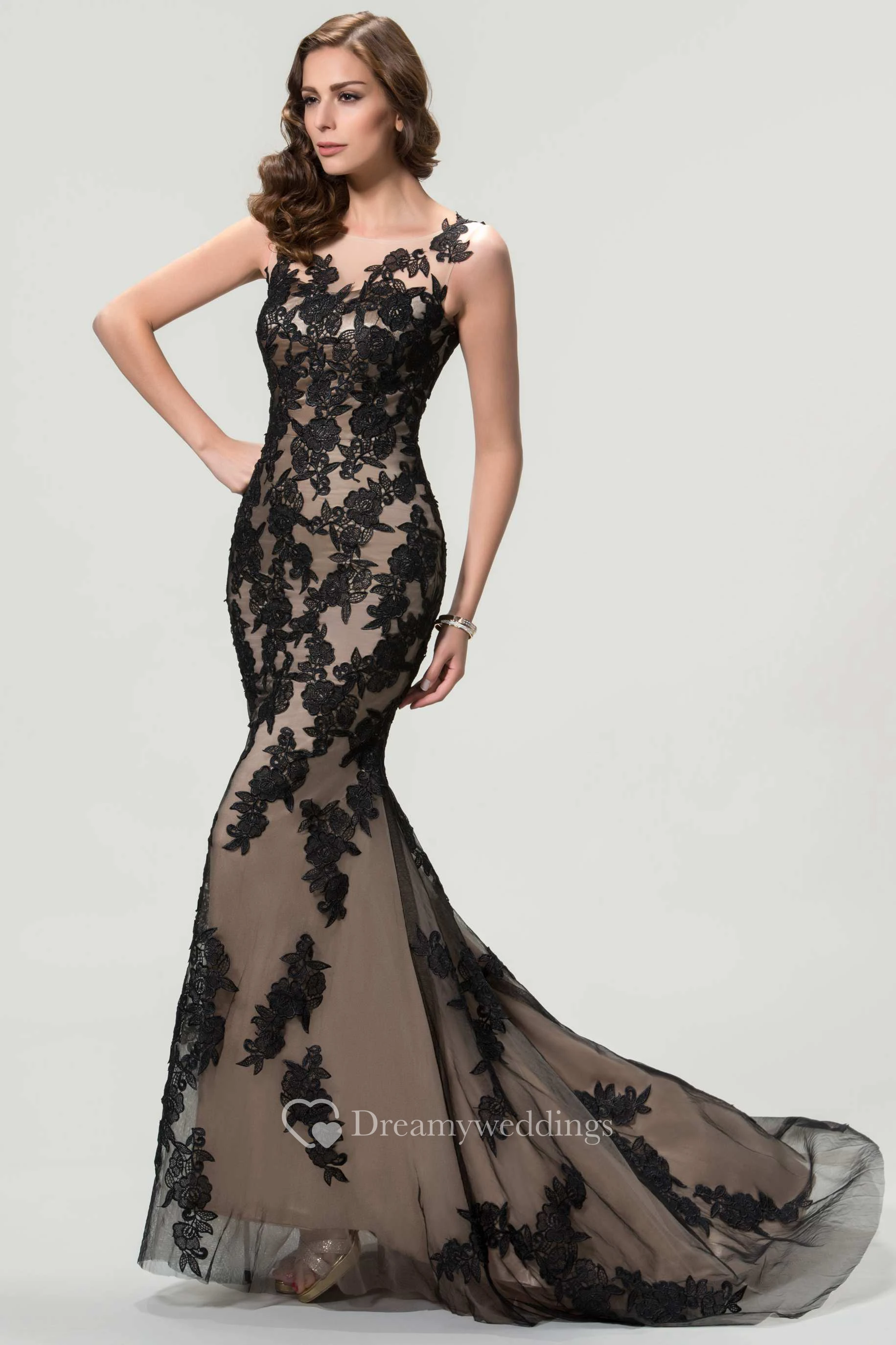 Sleeveless Bateau Neck Mermaid Long Lace Dress