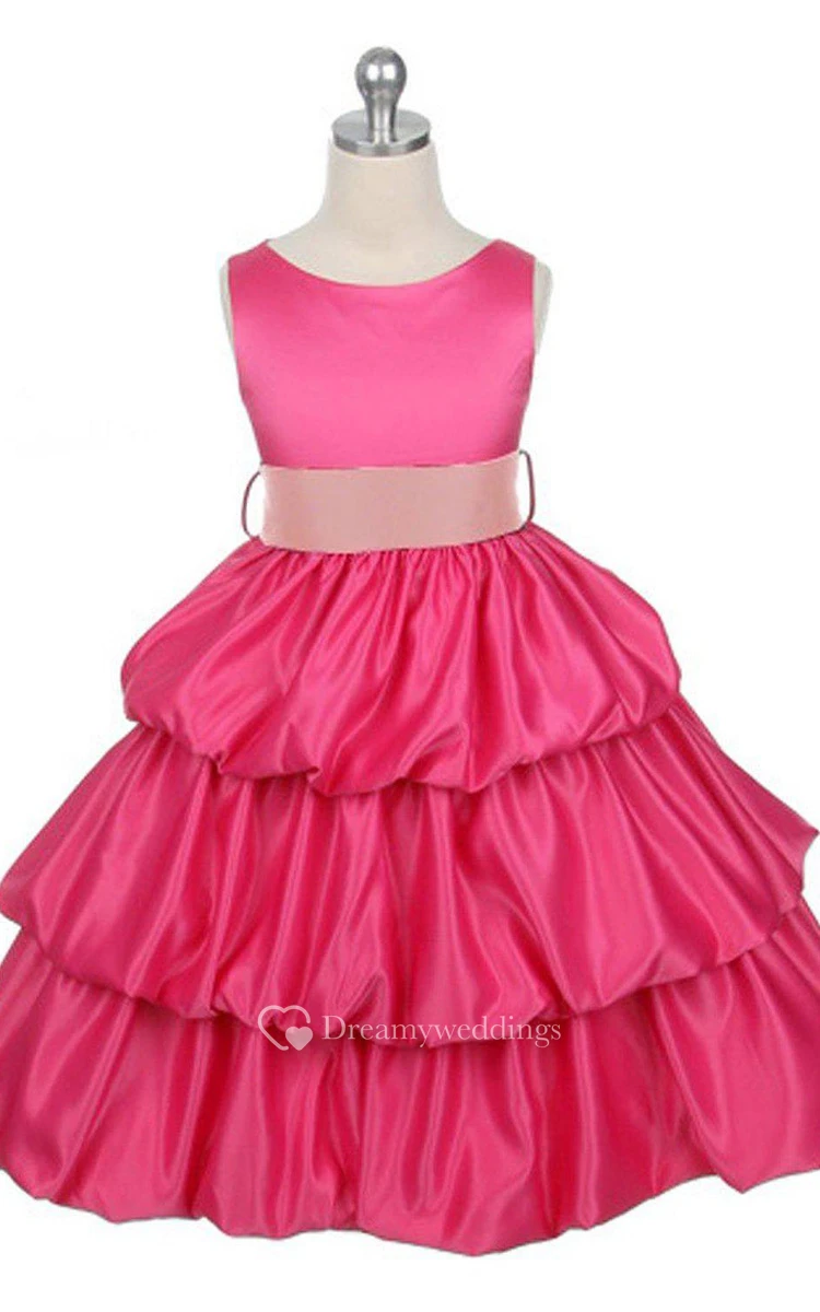 Sleeveless Bateau-neck Tiered Ruffled Dress