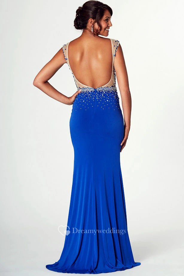 Sleeveless Beaded Bateau Neck Jersey Prom Dress