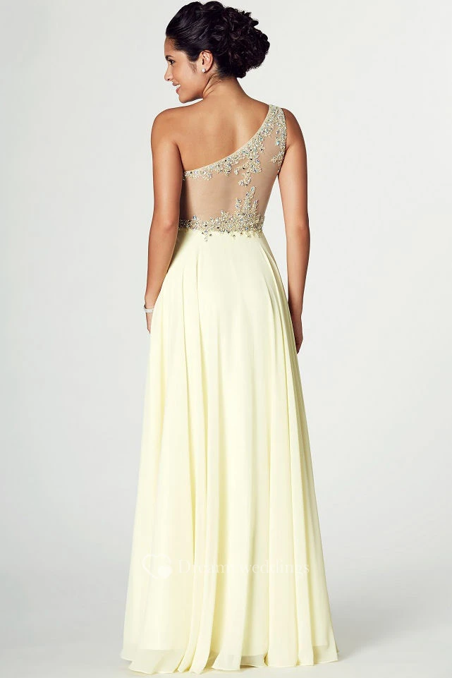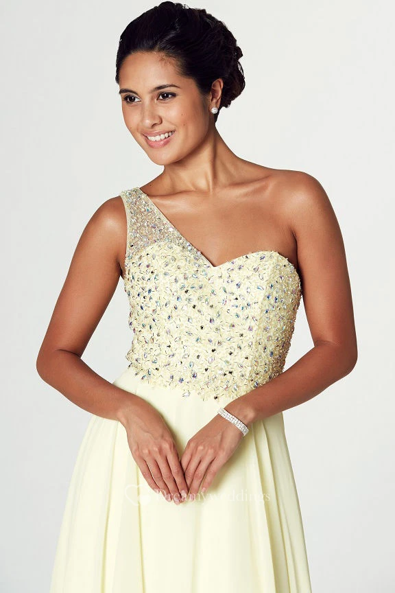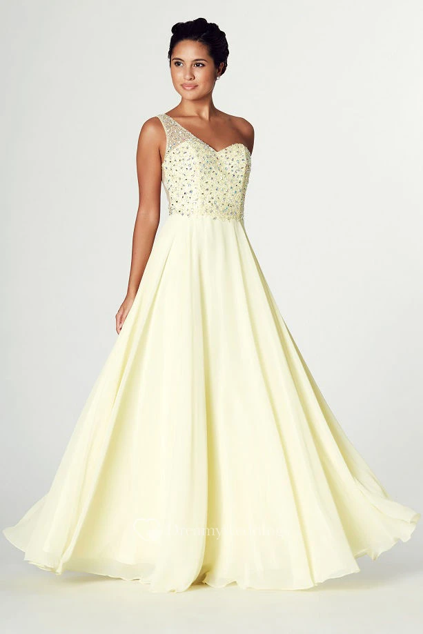 Sleeveless Beaded One-Shoulder Chiffon Prom Dress