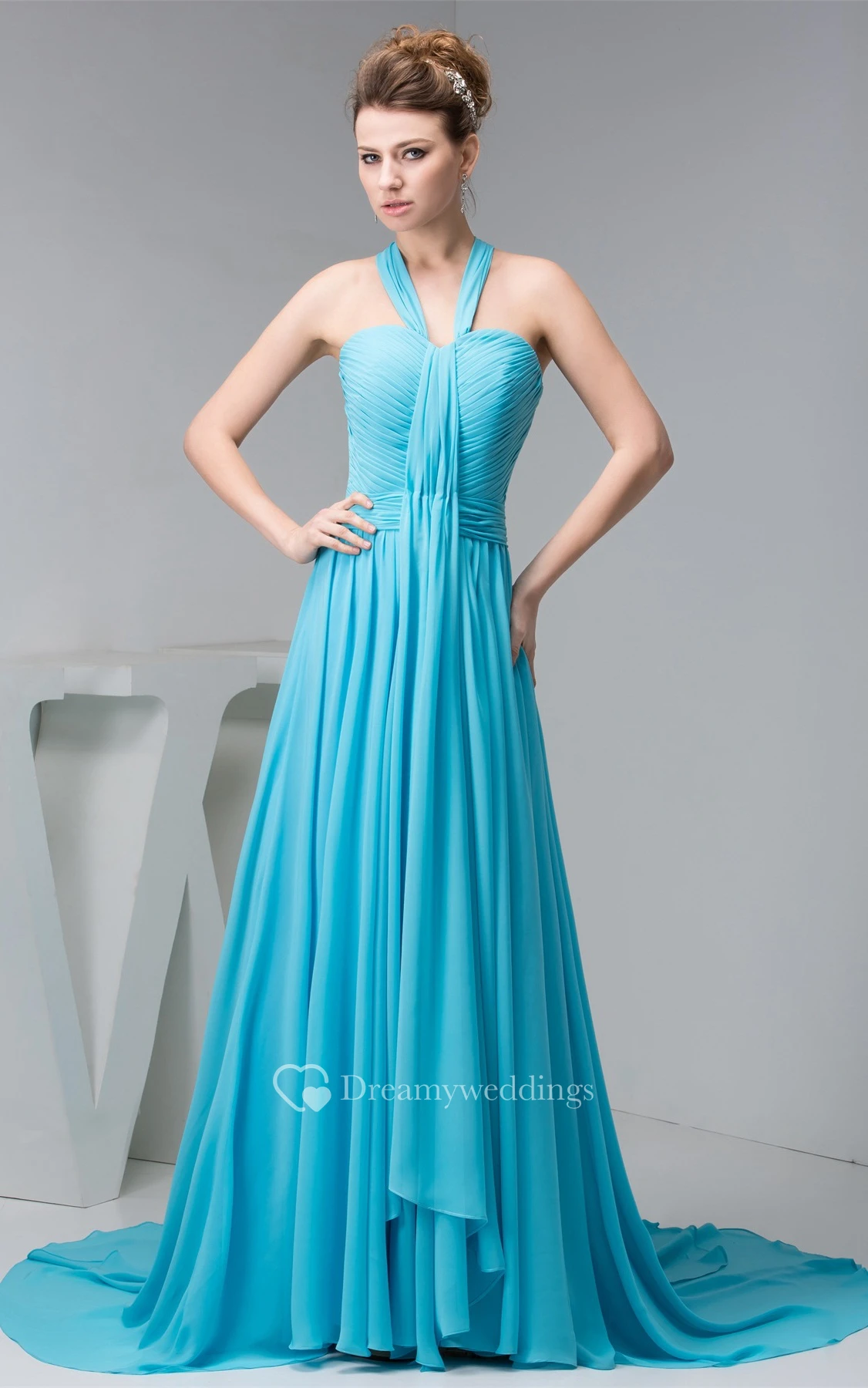 Sleeveless Chiffon Criss-Cross Halter and Dress With Pleats