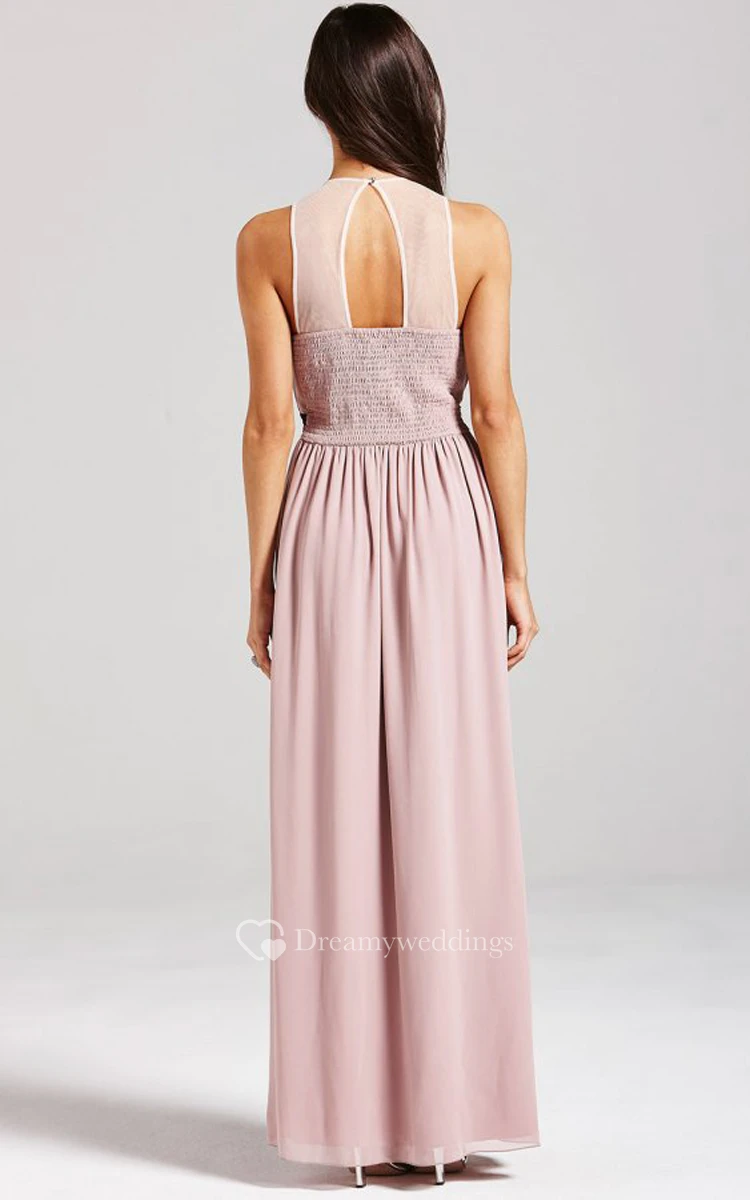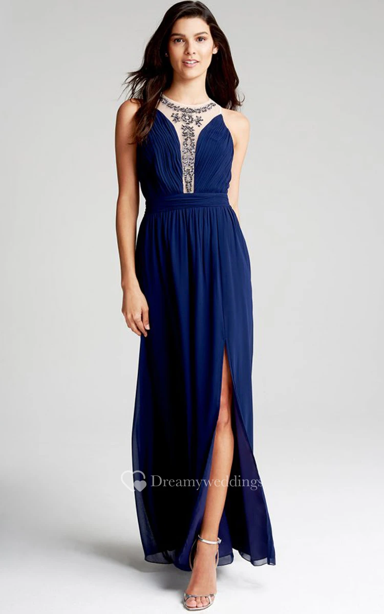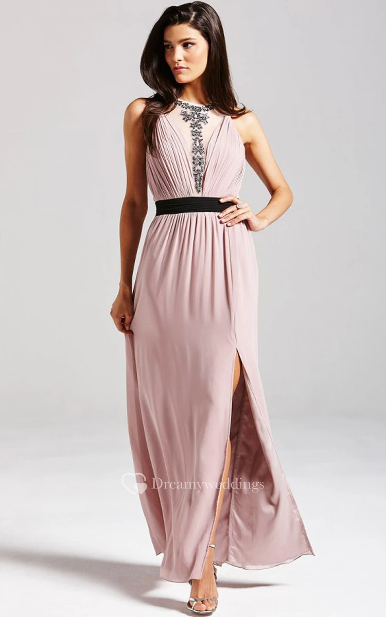 Sleeveless Chiffon Dress With Side Split