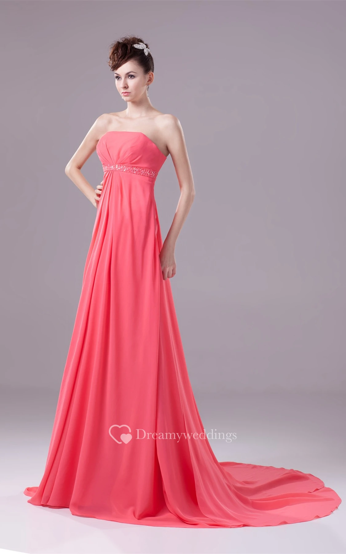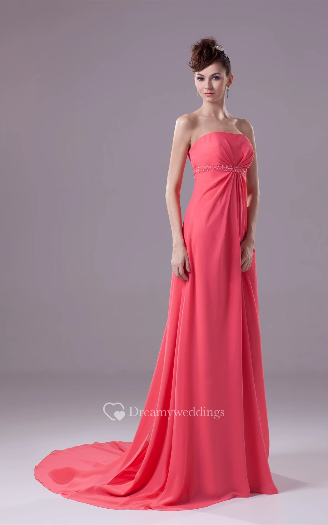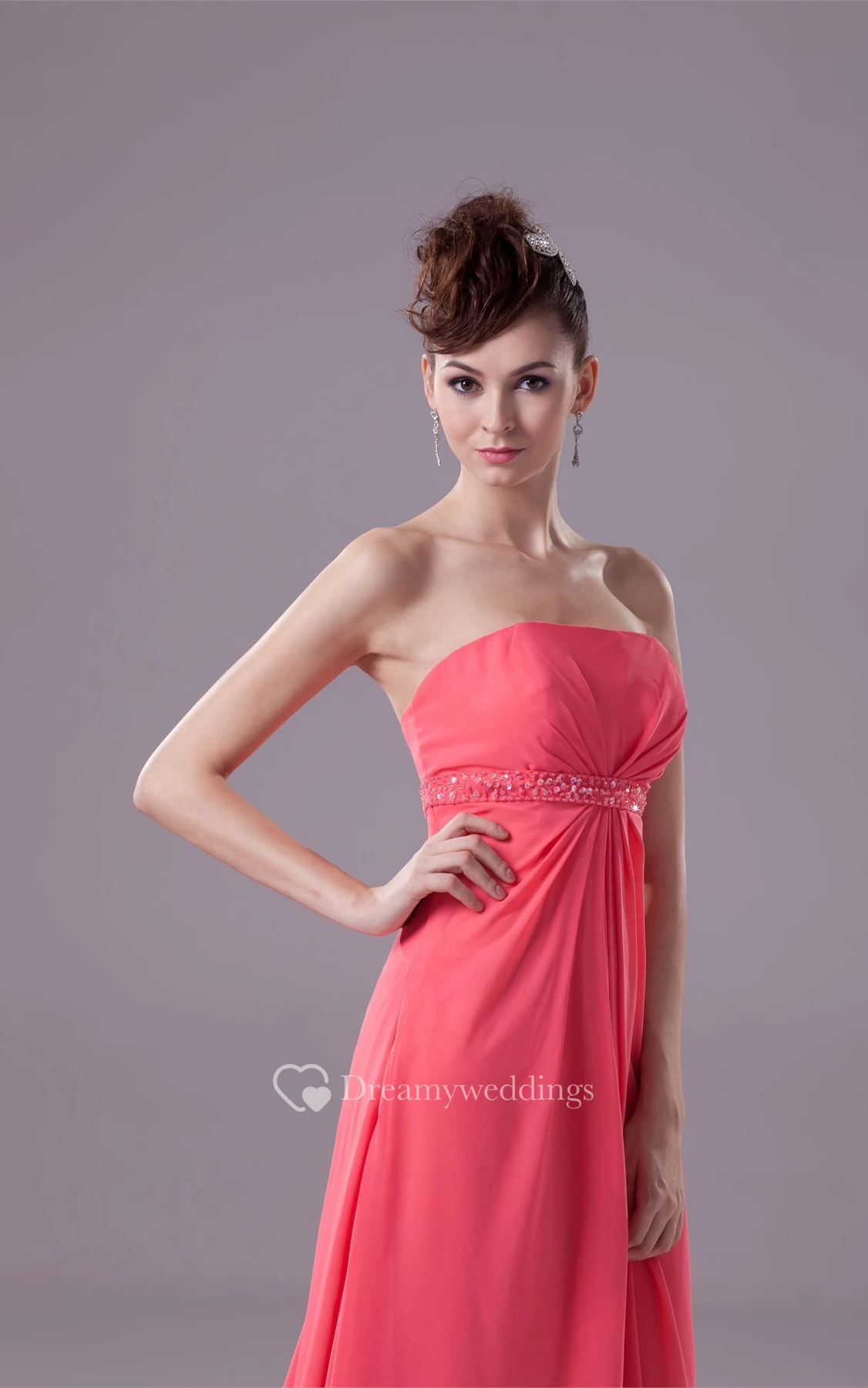 Sleeveless Chiffon Floor-Length Central-Ruched Empire Waist and Dress With Beading