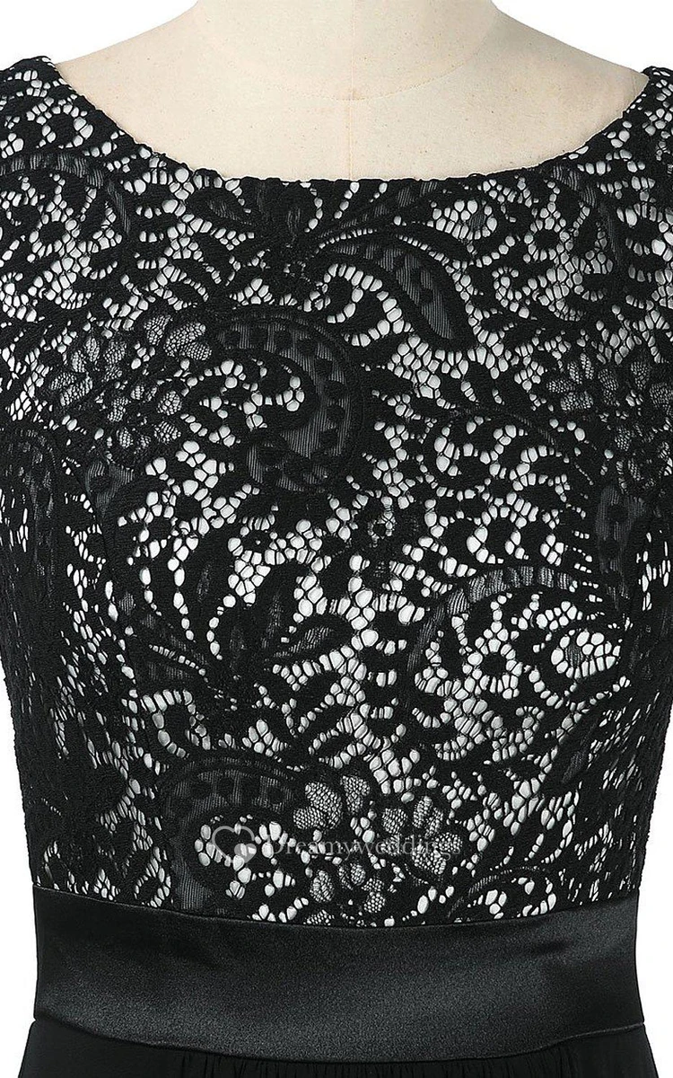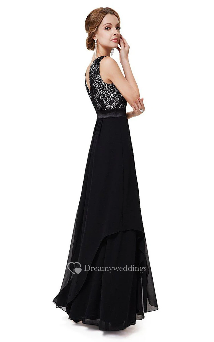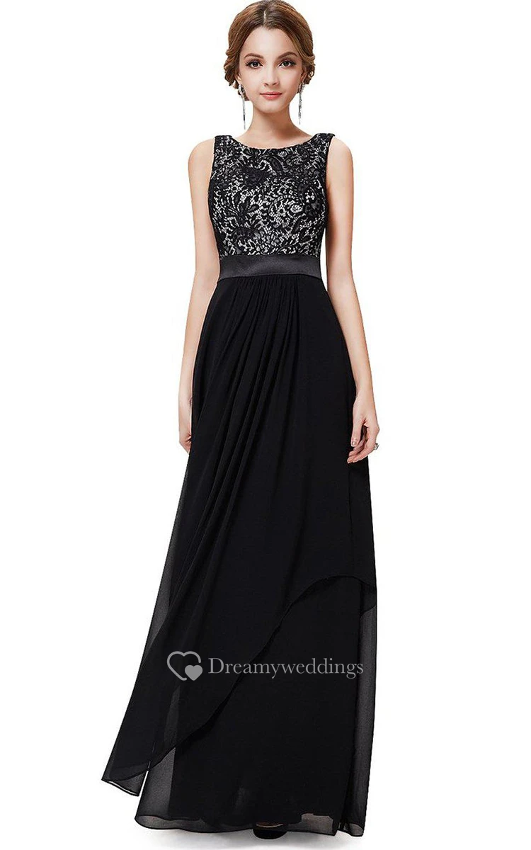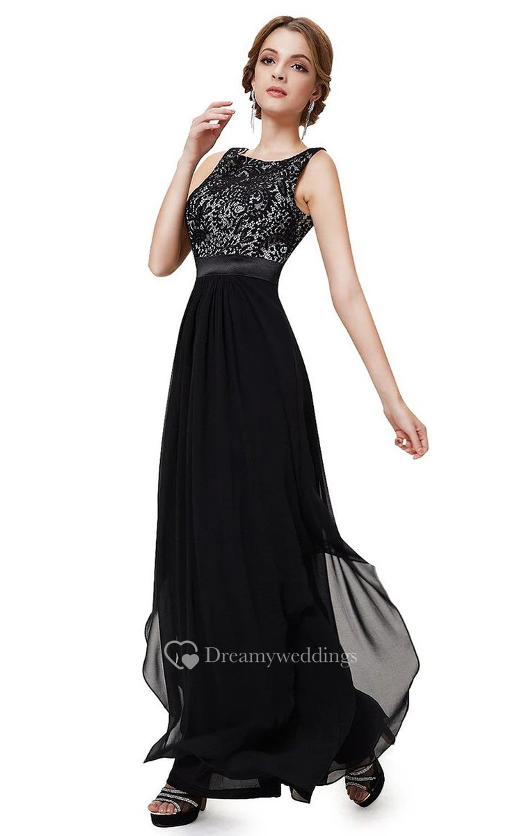 Sleeveless Chiffon Gown With Lace Bodice