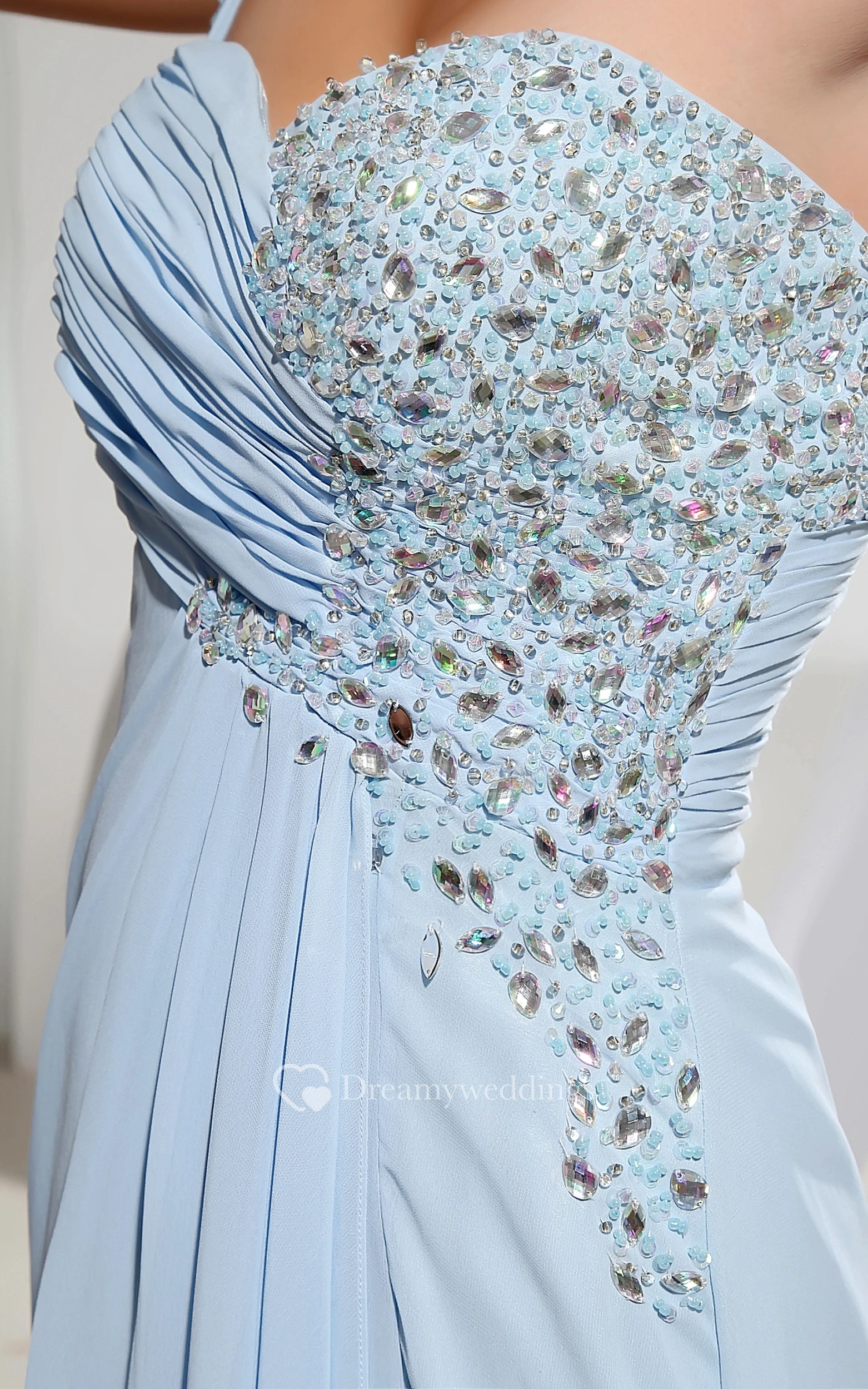 Sleeveless Chiffon Long Dress With Single Strap and Beading