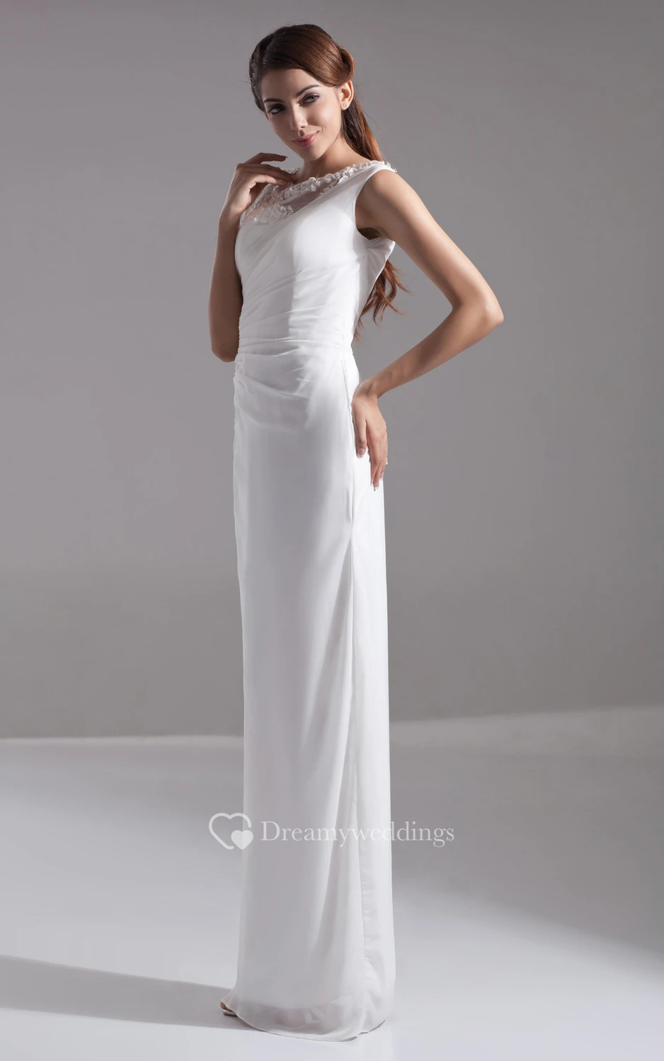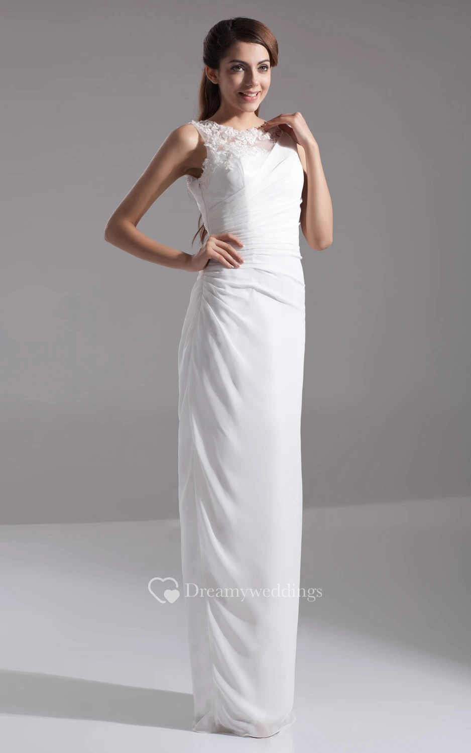 Sleeveless Chiffon Pencil Dress With Side-Draping