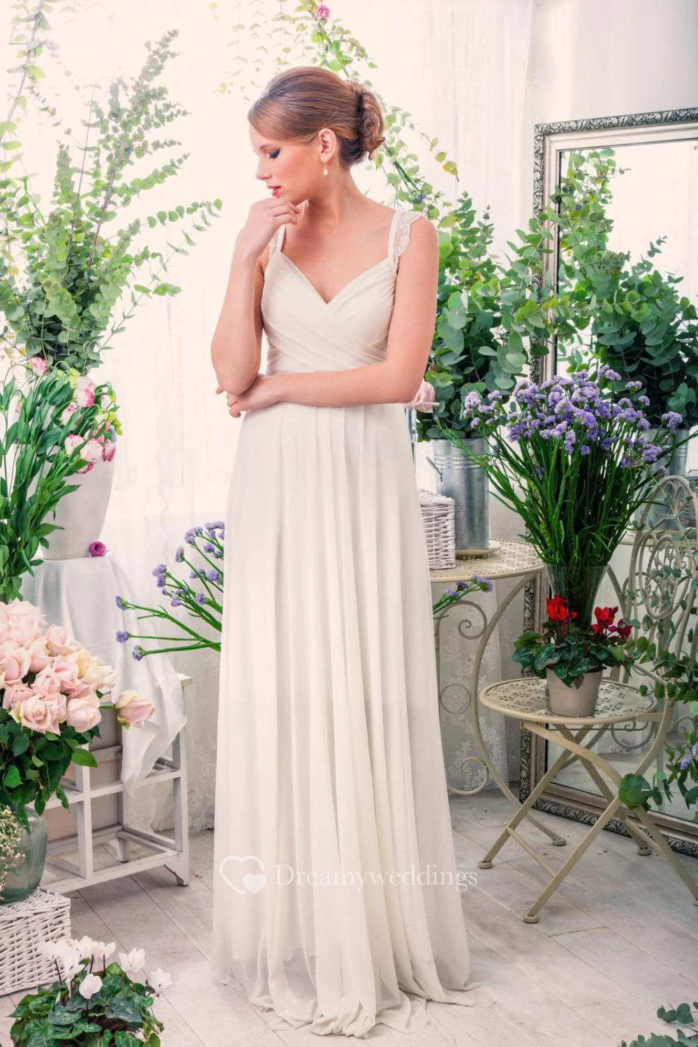 Sleeveless Chiffon Pleated Lace Floor-Length Wedding Dress With Keyhole