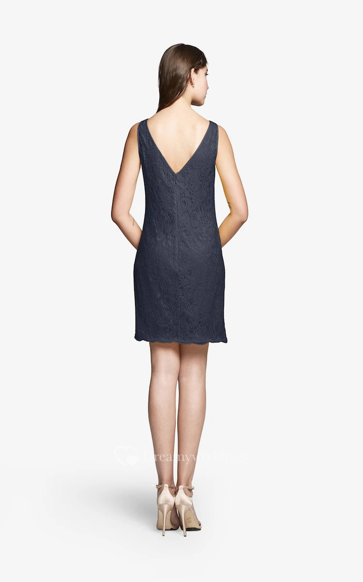 Sleeveless Elegant Lace Short Dress With V Back