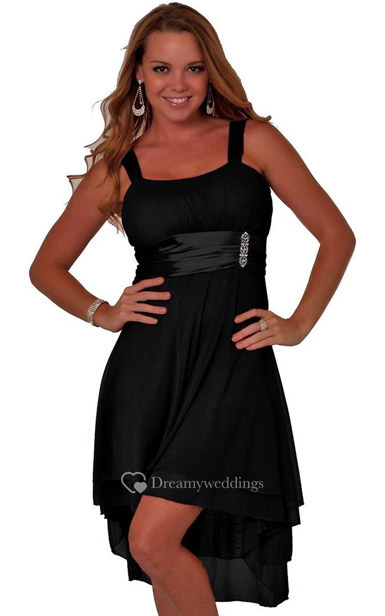 Sleeveless Empire High-low Dress With Beadings